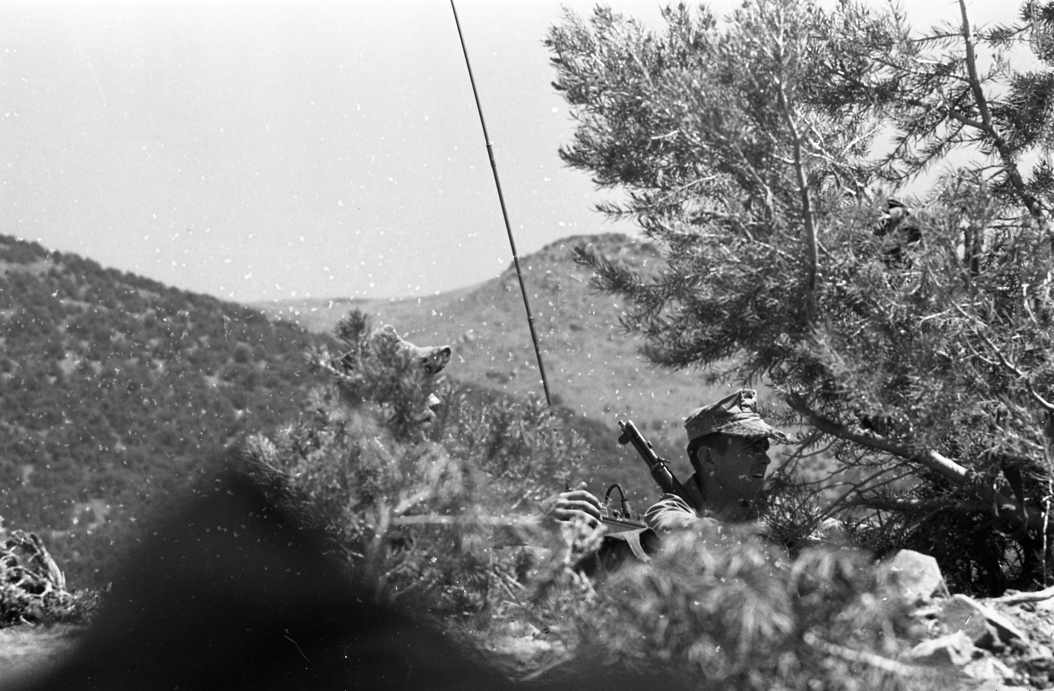 Evansville's 17th Rifle Co. Marine Reserves attended summer training at Hawthorne Naval Ammunition Depot (now called Hawthorne Army Depot). With over 147,000 acres/226 square miles, it is the world's largest depot and a frequent site for desert training. Here 2 soldiers are on maneuvers.