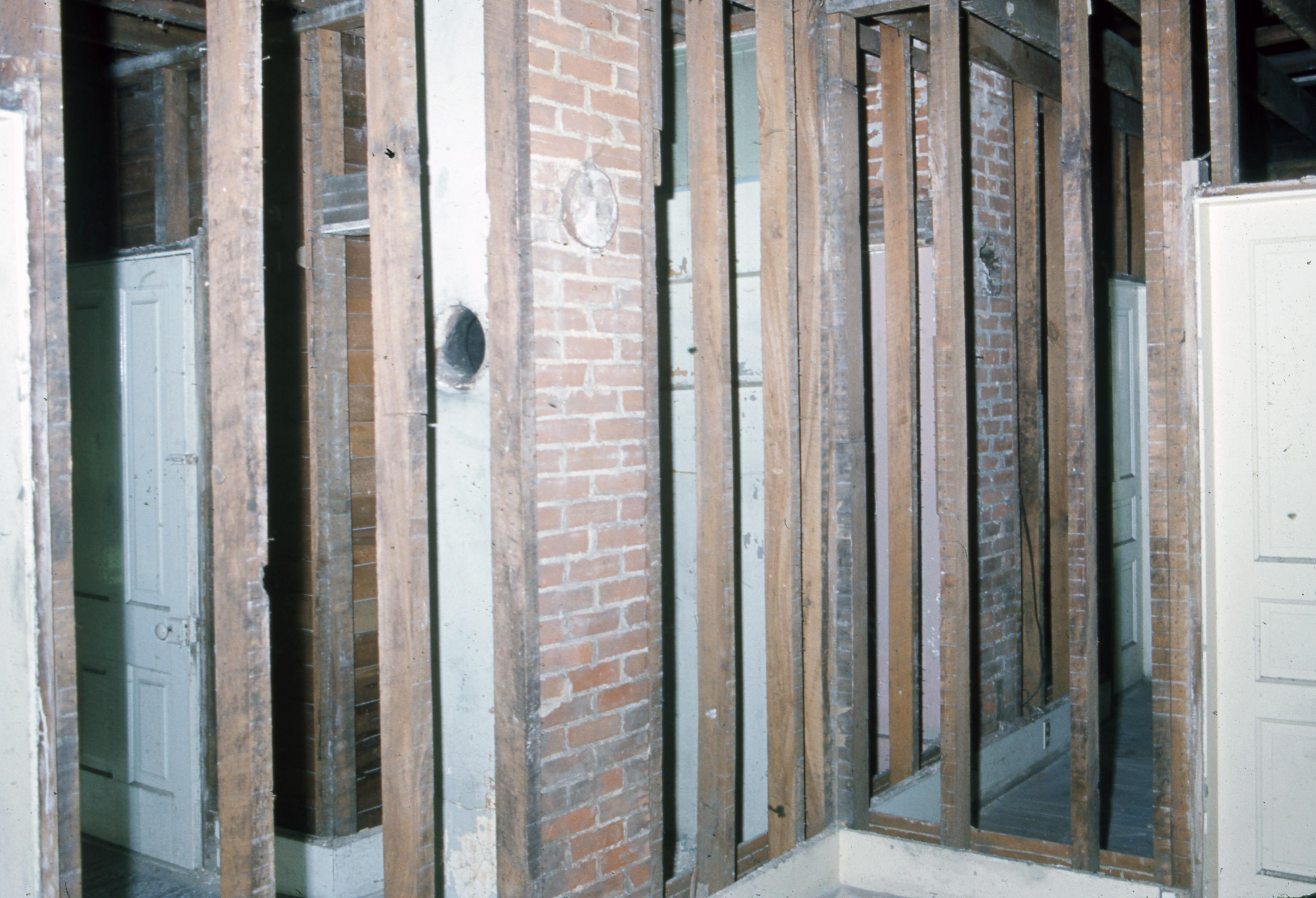 Patterson House: Located at 682 Arthur Street and built in 1850. This is a photo of the first floor renovations of the house. An old chimney can be seen near the center of the photo.