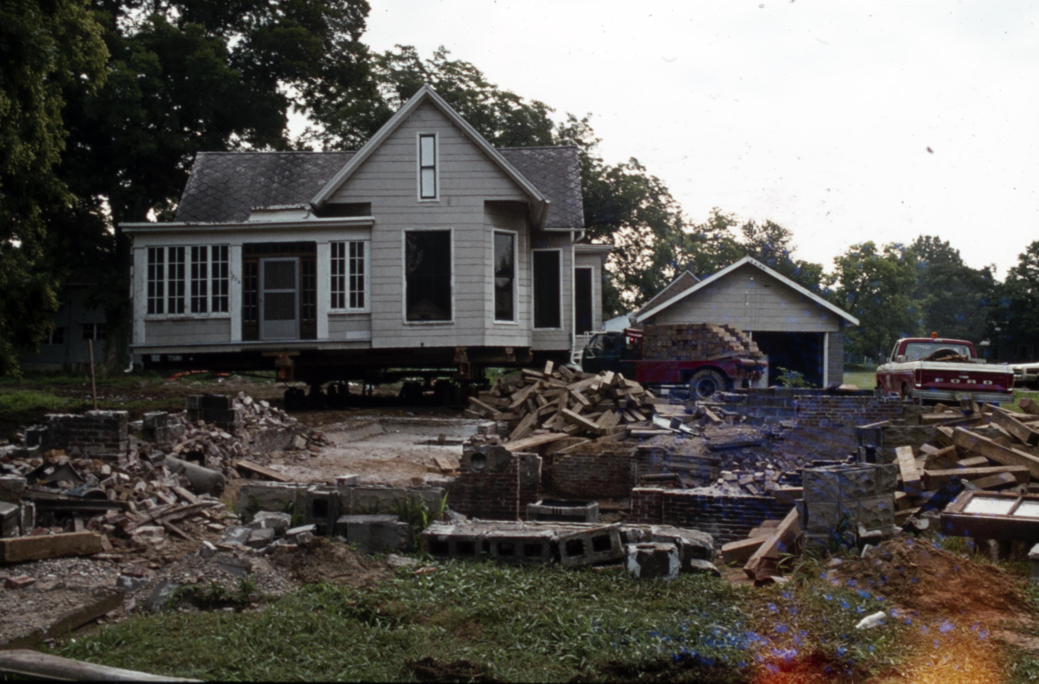 The Barrett House was initially located on Main Street and was moved during the New Lanark Construction and William Ford Memorial Home expansion during the late 1970s. The small historic house which had been located on the plat at 604 South Street was demolished to accommodate the Barrett House. The Barrett House jacked up and ready for the move. Elmer Buchta were the movers.