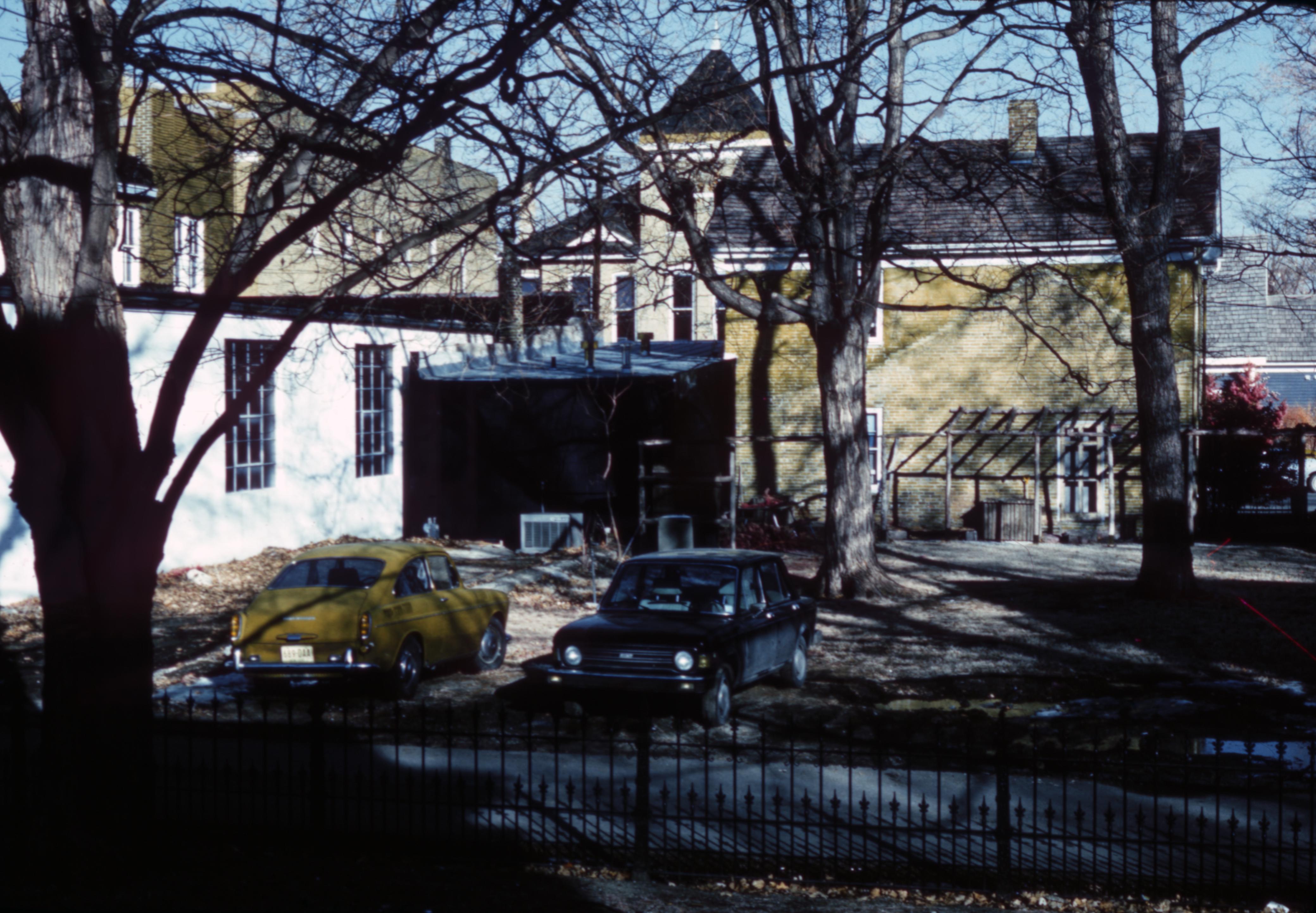 This photo was taken behind 611 Main Street facing east from the alley. The City Building tower is clearly visible in the center background of the photo.