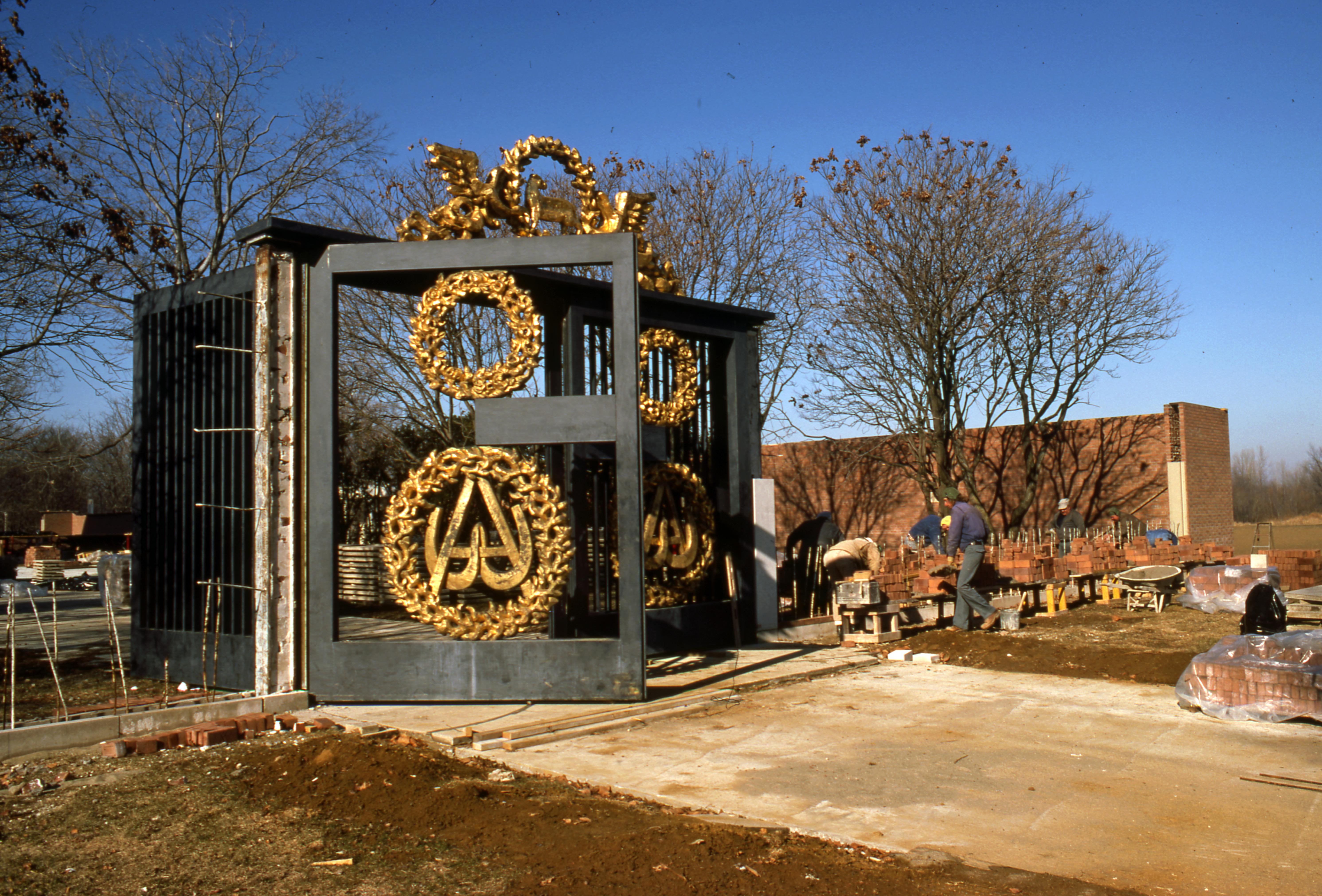 The gates at east entrance of the Roofless Church. The Roofless Church is located at 420 and was commissioned by the late Jane Blaffer Owen and built by architect Philip Johnson. The inter-faith church was dedicated in 1960 and is open to the public.