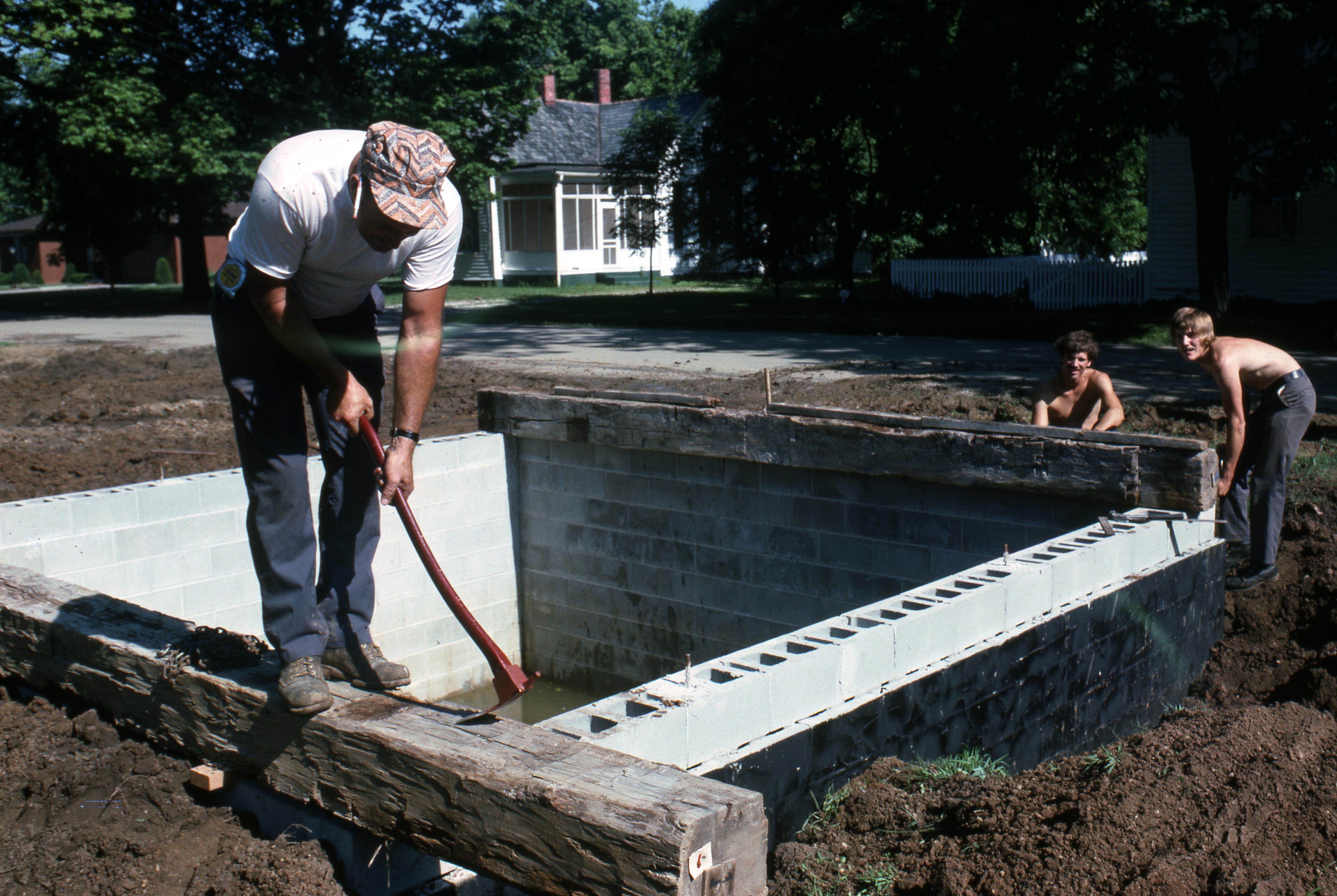 Reconstruction of the West Street Log cabins at 301 West Street, New Harmony, Indiana. The logs that were used to reconstruct the West Street Log cabins came from the John Spencer log house in Crossville, Illinois.