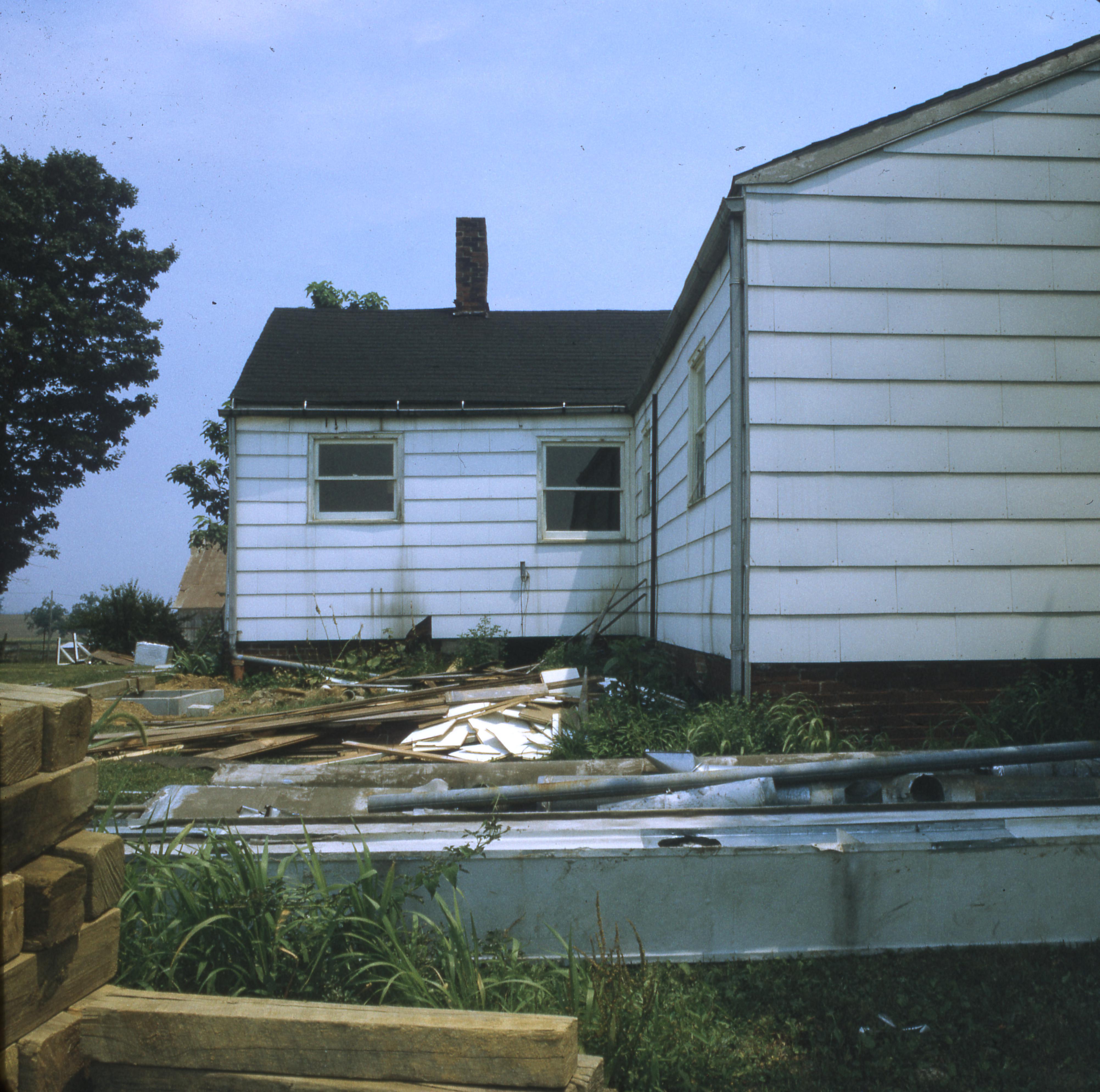 The Jaquess House: This is a photo of the Jaquess House, as it was before being dismantled, from which the parlor was taken, was moved from somewhere near Poseyville. It was then taken through a field to near the edge of a highway where it was dismantled. The parlor was then incorporated into the Owen House on the corner of Tavern and Brewery Streets in town block 6 E east.