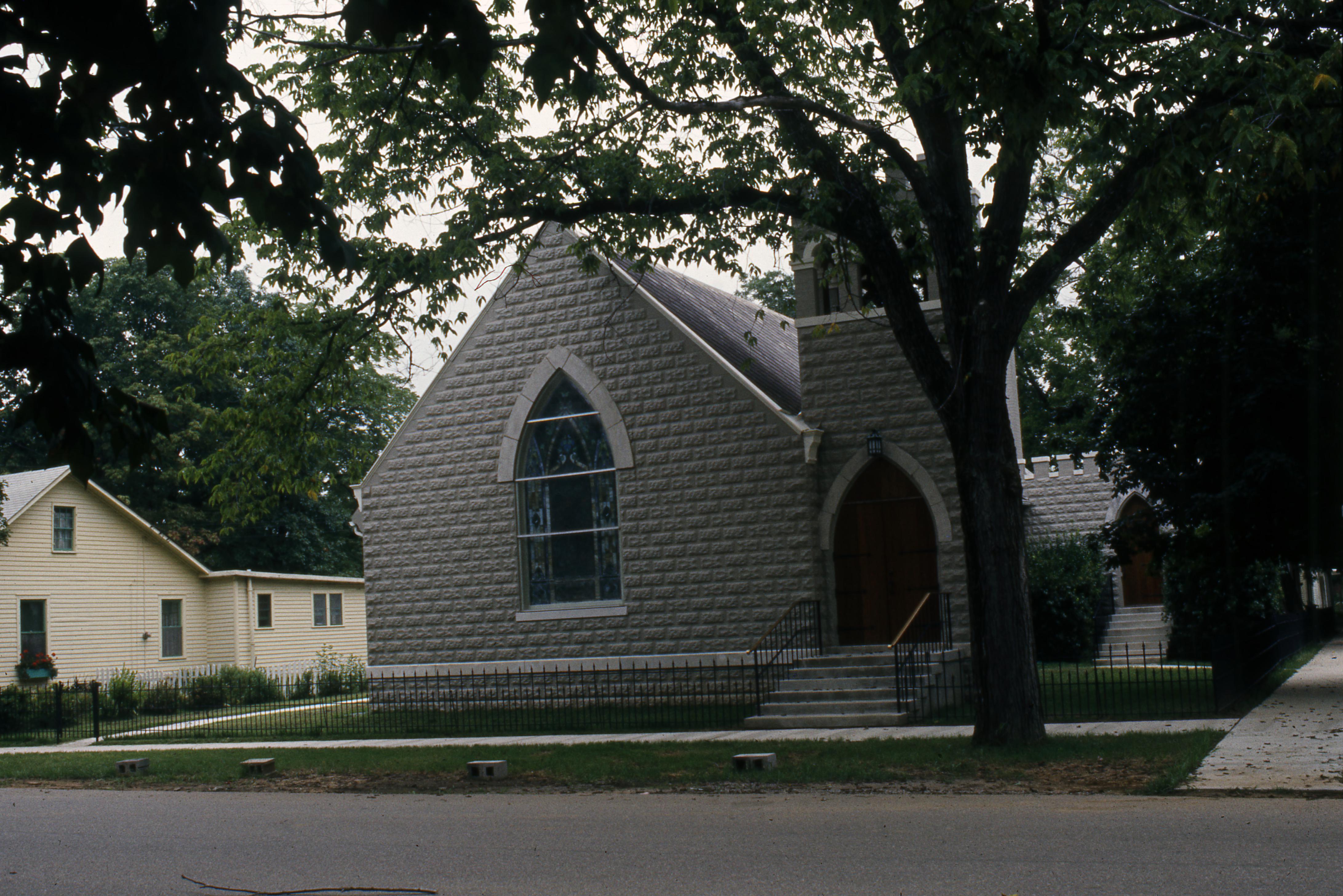 St. Stephen's Episcopal Church: The church was first organized in 1841 and in 1843 the west wing of the old Rappite church was given for use by the Episcopal�s by Alexander and Anne Maclure. At this time the old burial ground was also given to the church, which was bought back by the Rappites in 1846. Then in 1850 the Episcopal�s sold the west wing of the old Rappite Church for $1000 and in 1854 St. Stephen�s Church was constructed, the North Street location where the Lenz House now resides.1888 saw the construction of a new belfry add to the church to accommodate the new bell. In 1911 the new church was built, and an addition was made to it in 1927. The church is still present as of 2022.