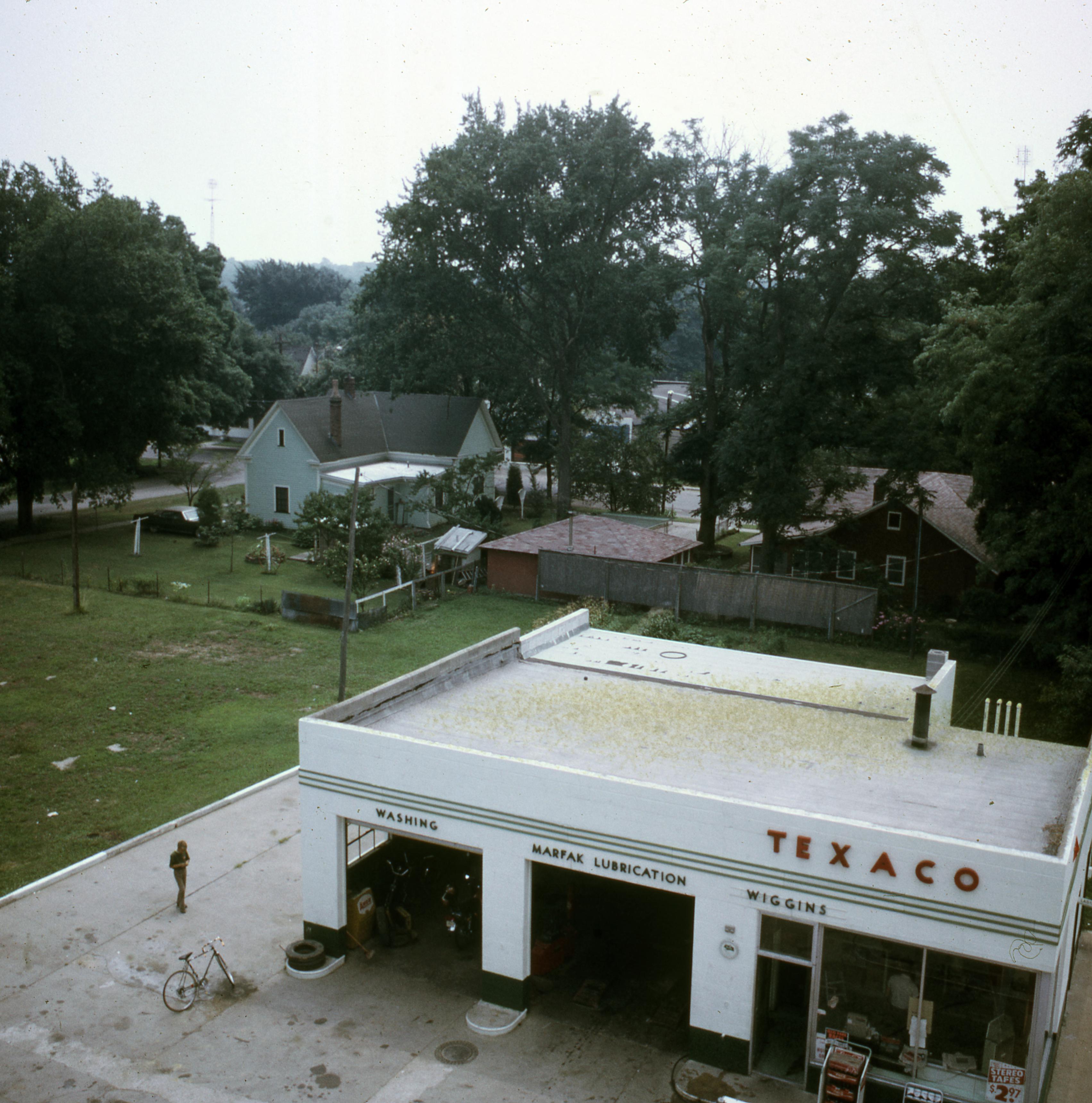 Texaco: This gas station was located at 621 Church Street, but has since been become a Marathon gas station. This photo shows the front of the building which faces Church Street. The empty plat on the left side of the photo was the site of the Mumford/Pricher House which was demolished or moved between 1943 and 1972.
