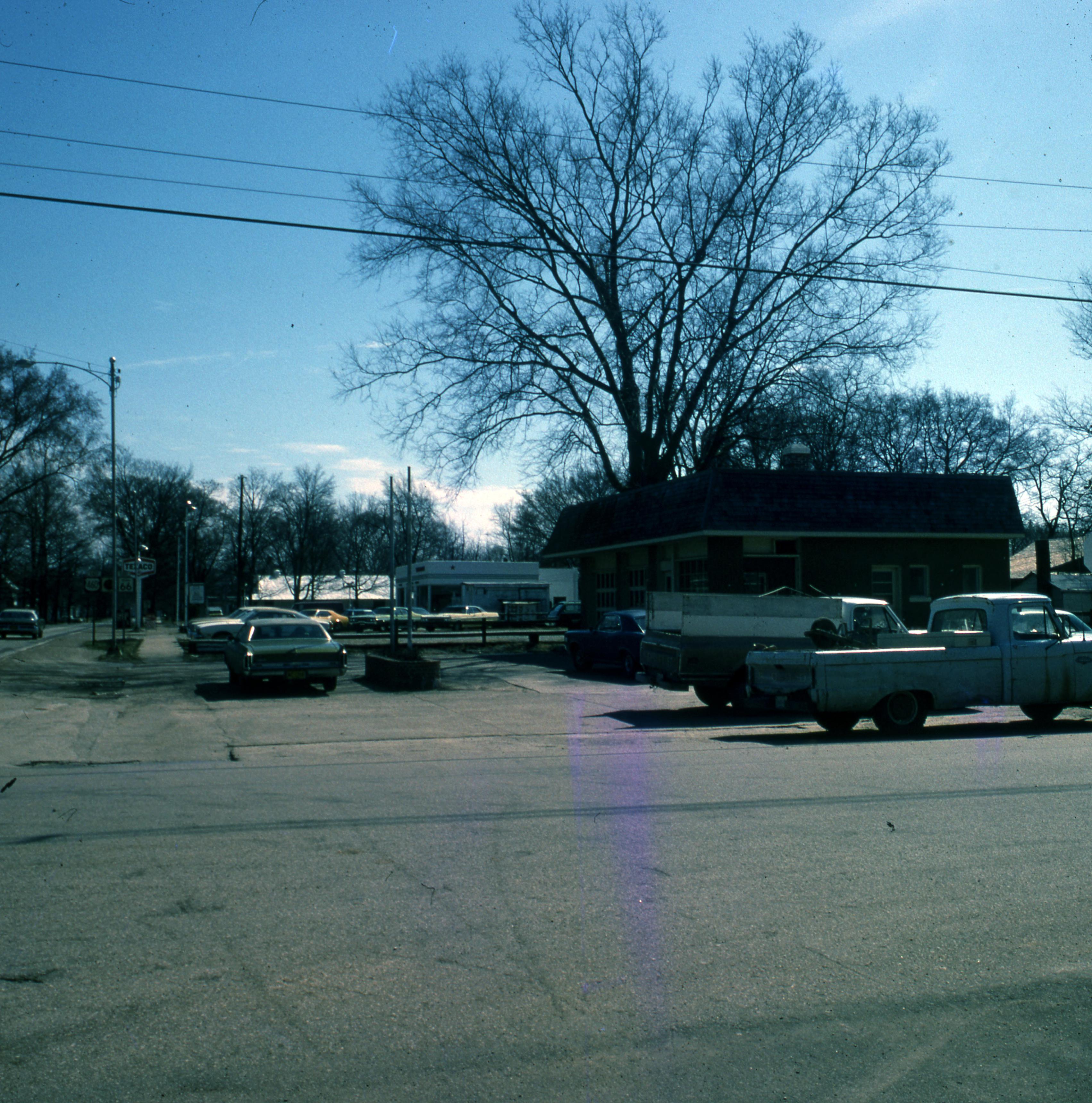 1943 Filling Station: This old gas station was located on the corner of Brewery and Church Streets. It was demolished to make room for the Beal House and Kemmerling House moves. The Texaco gas station can be seen in the background near the center of the photo.