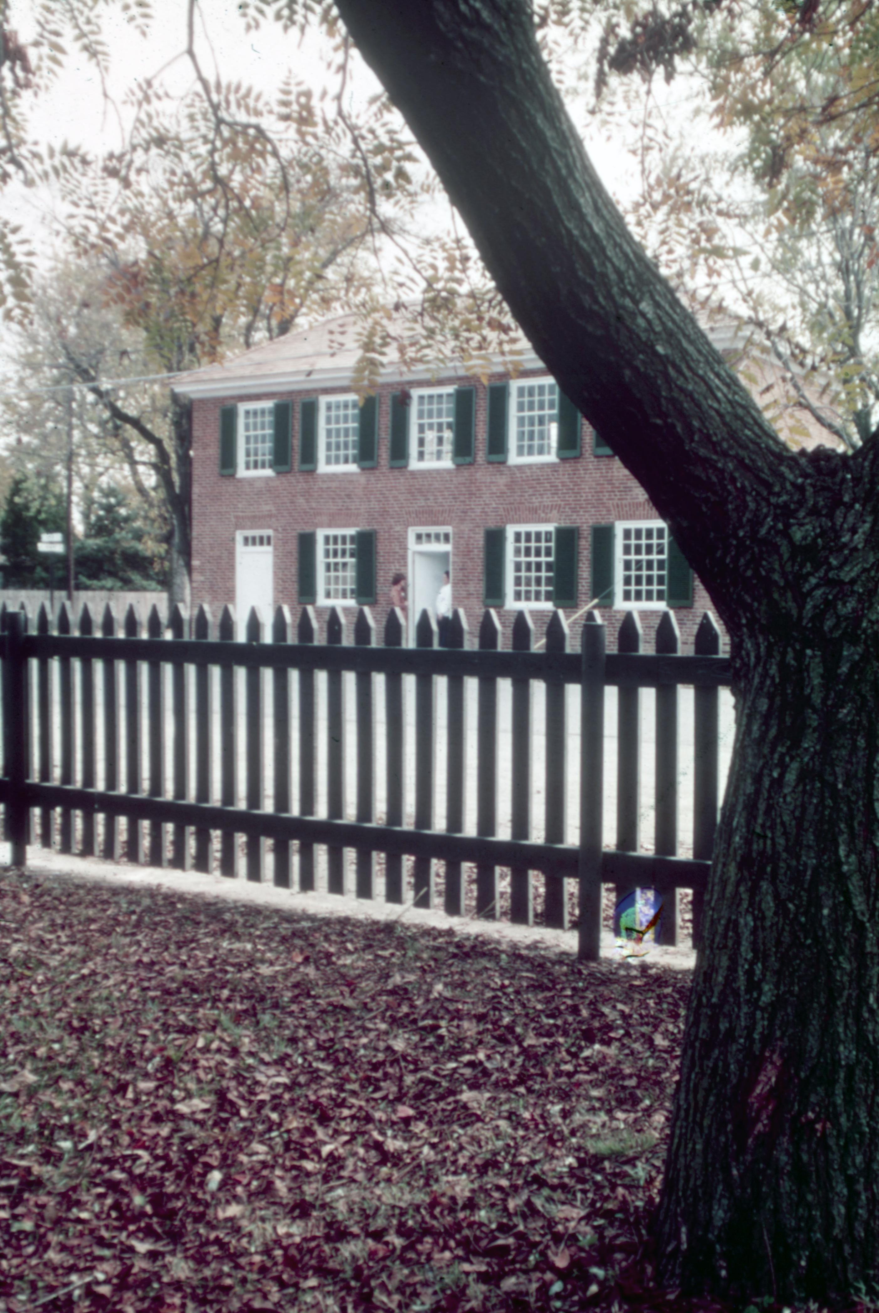 1830 Owen House: Located at 531 Tavern Street. Two people talking in the doorway of the 1830 Owen House as seen from across the street at 532 Brewery Street.