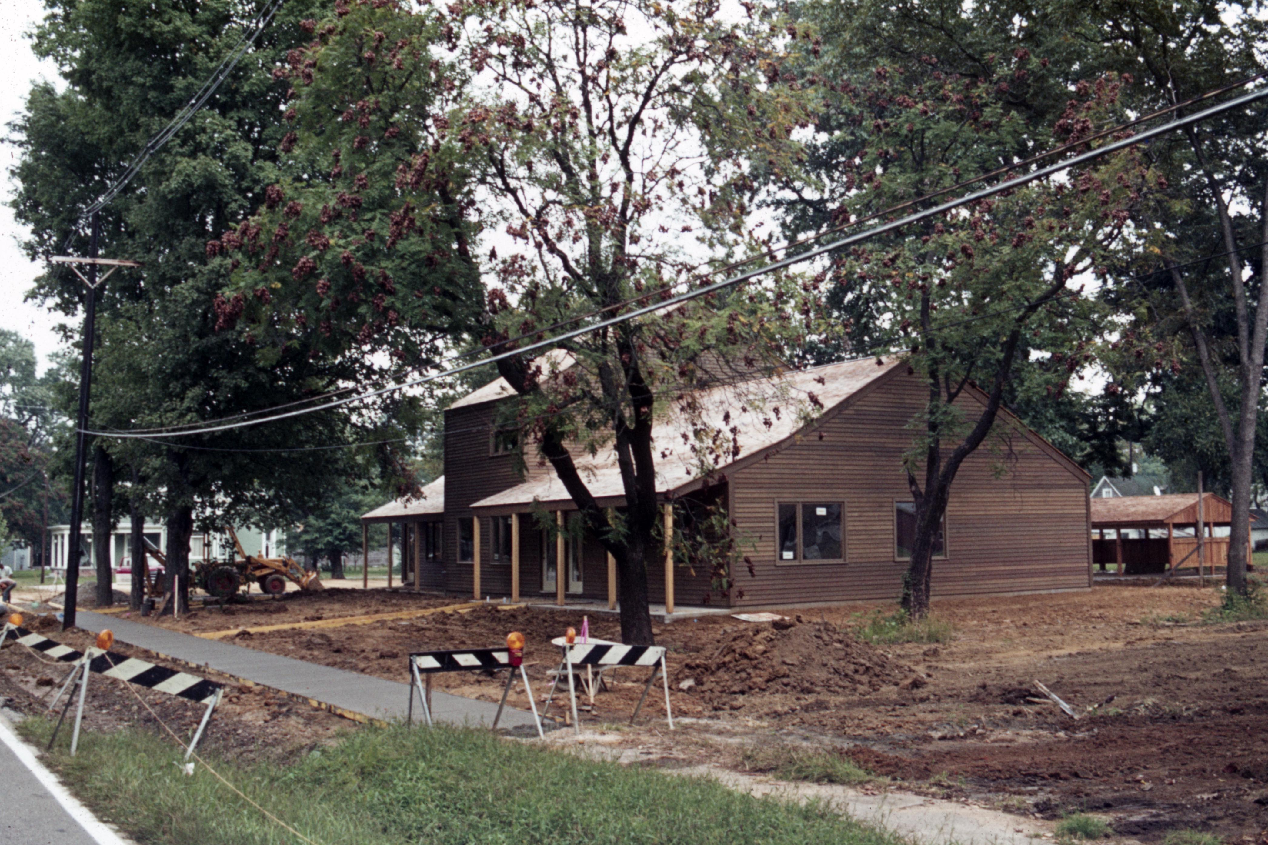 Lanark Development Collection: Construction of 820 Main Street New Harmony Indiana. Work on the driveway and sidewalk at the front side of the building facing Main Street.