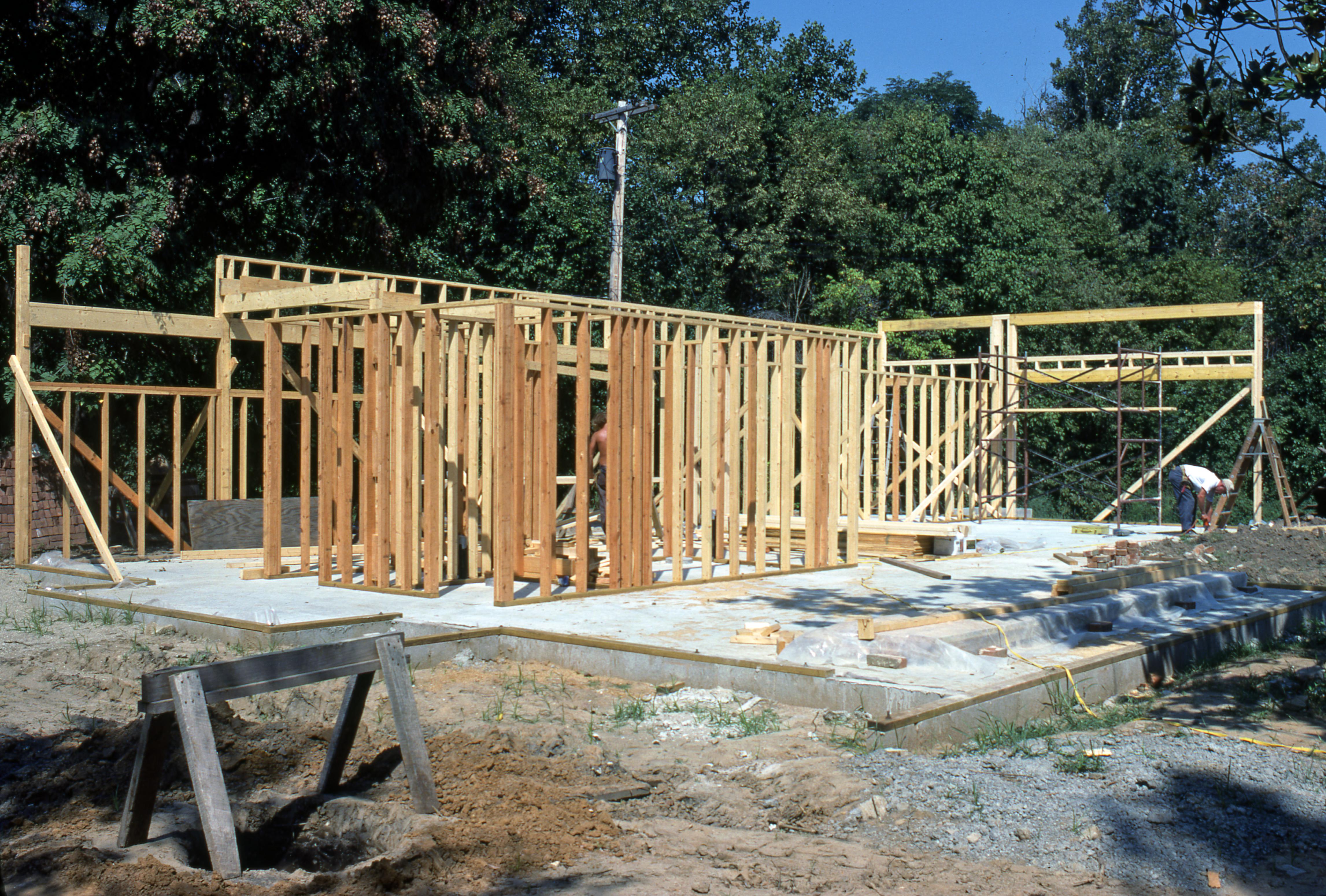 Construction of the Sarah Campbell Blaffer Potter�s Cabin. The cabin was constructed by Jane Blaffer Owen in honor of her mother, Sarah Campbell Blaffer. The cabin is located at 402.