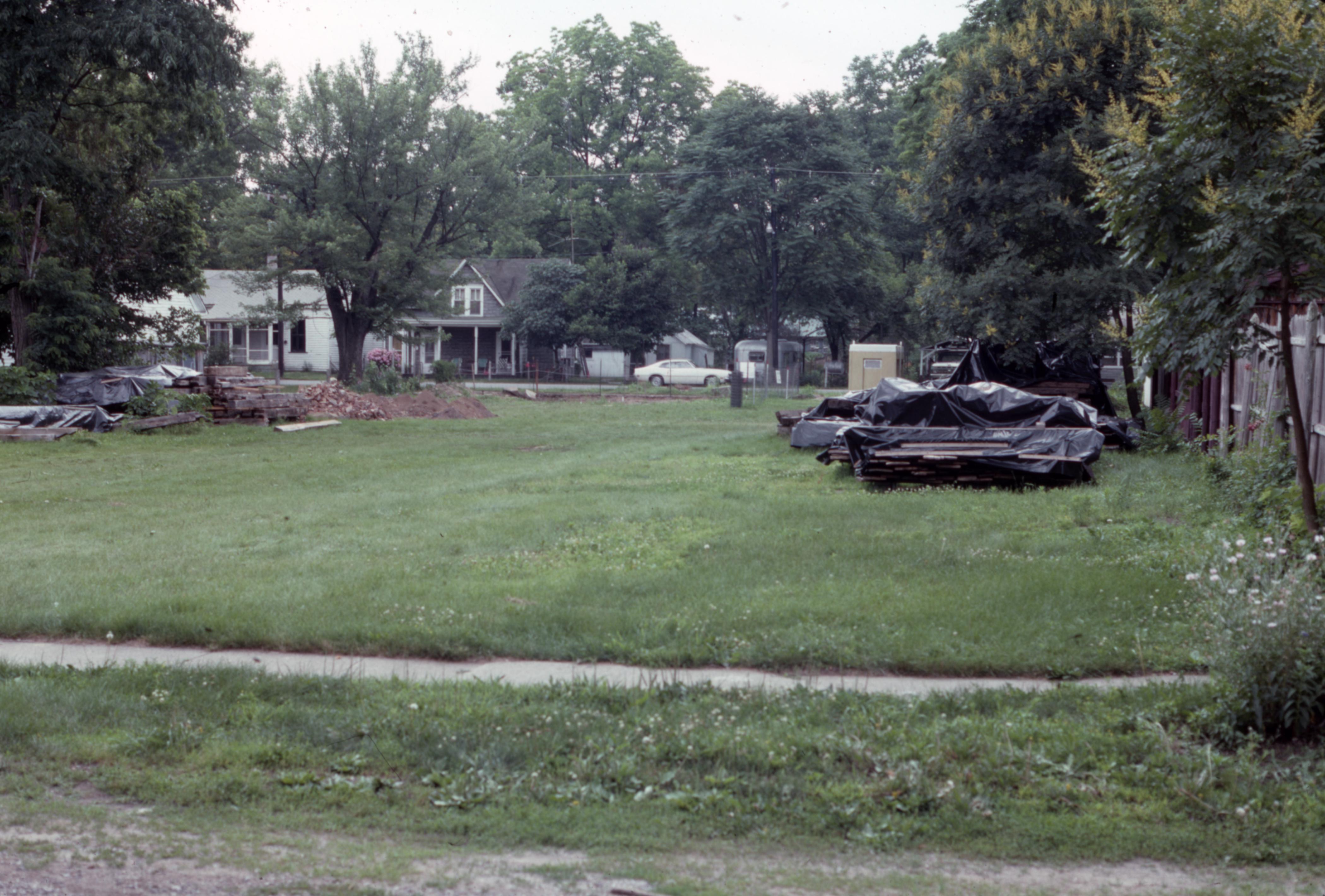 Indiana State University Evansville Archaeological Dig Collection: Solomon Wolf House. This dig site was located on South Street just east of 718 Main Street. This building was moved to 601 Granary Street for the construction of the Tree of Life Clinic. This photo is looking south across the dig site plat. Many of the houses across South Street were demolished during the Lanark Construction.