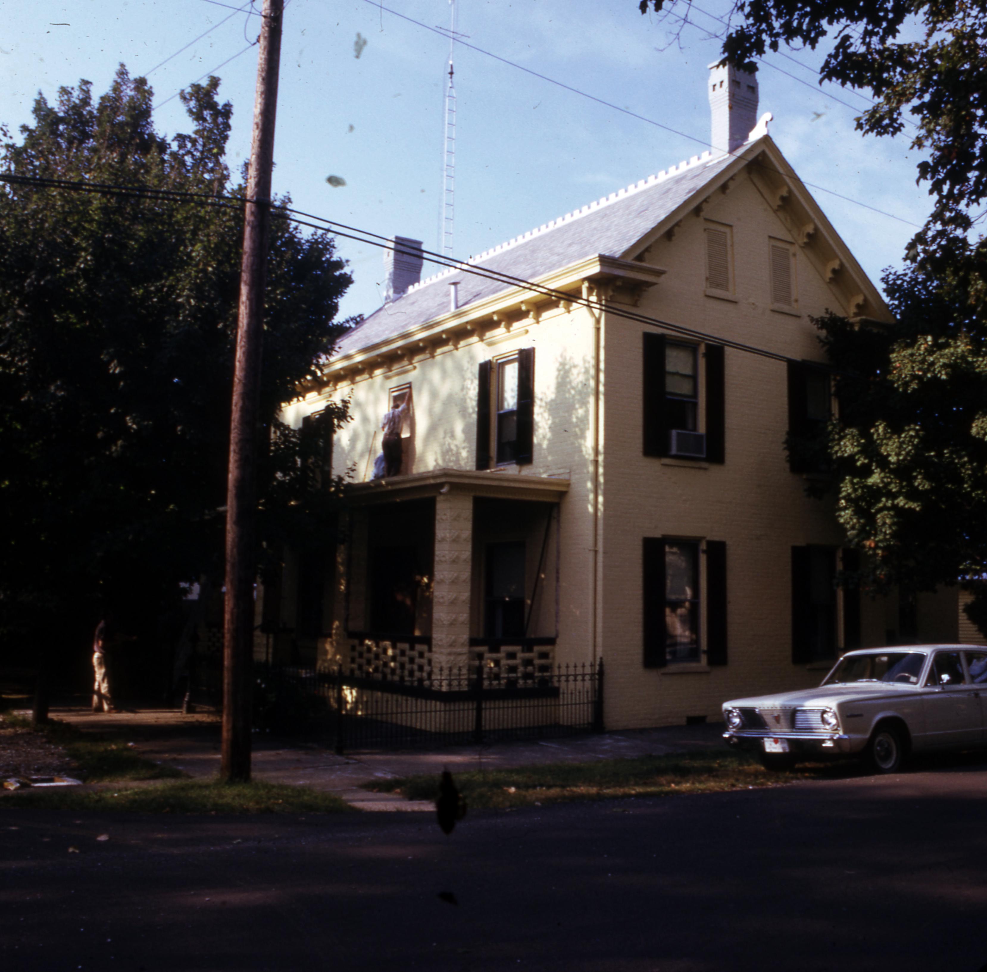 Schnee House: This photo is of the second Schnee home located at 603 West Street and was constructed in 1876. The first Schnee home was constructed during the Rappite occupation of the town, the Schnee brothers having moved to the town from the Quaker colony in Pennsylvania, and that house was located at 517 Tavern Street. The Gypsy Girl Livery Stable was later constructed behind that home. This photo was taken from the corner of West and Tavern Streets just as restorations were beginning.