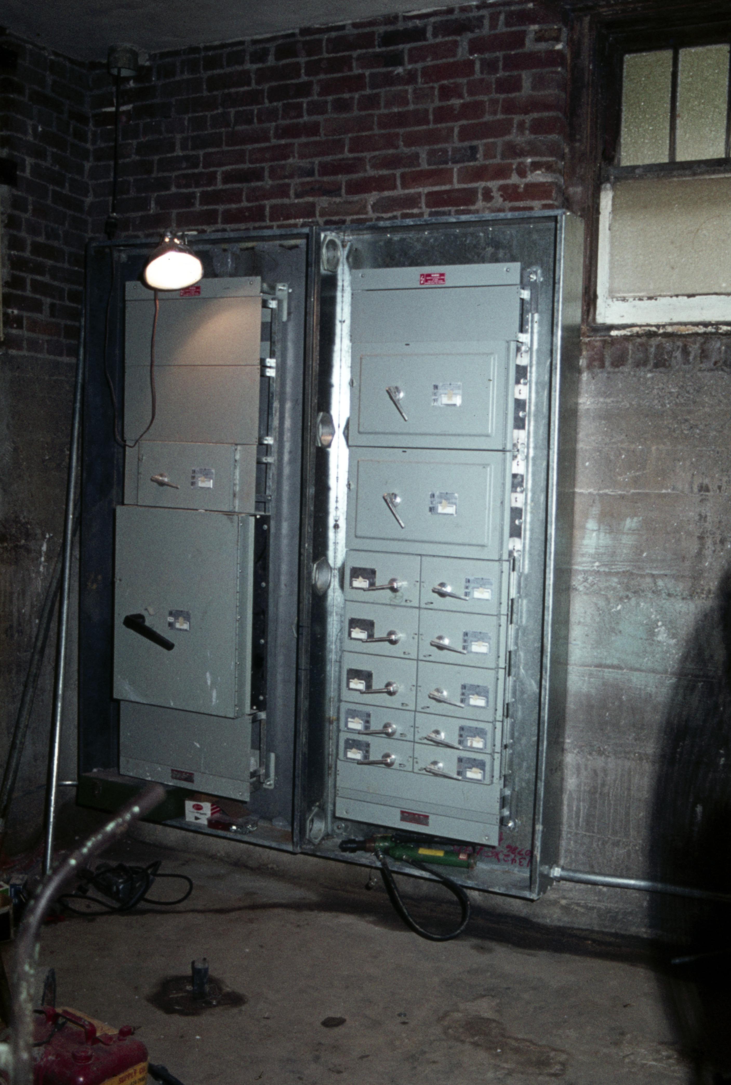 Murphy Auditorium: Murphy Auditorium is located at 419 Tavern Street and was constructed on the plat just east of the Working Men's Institute from 1911 to 1913, using the Doctor Edward Murphy Fund, and was built as part of New Harmony's centennial celebration of 1914. In 2014, the town's bicentennial, Murphy Auditorium became the new home of the concert series Under The Beams, originally housed in the Rapp-Owen Granary. Today, the auditorium is owned by the University of Southern Indiana and is the home of The New Harmony Theater with a seating capacity of 360 people. This is a photo of the electrical panels for the building.