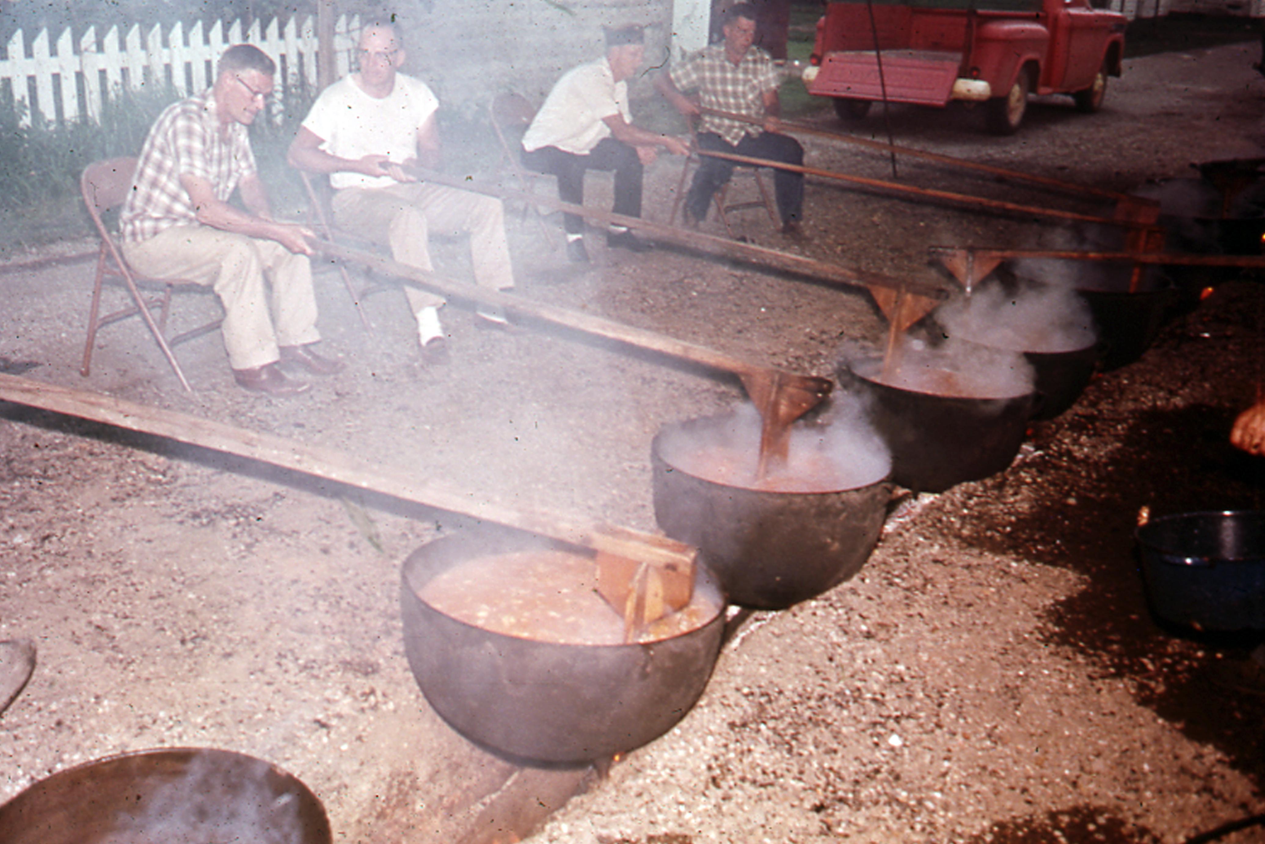 Wilson's Store, Men, possibly, making apple butter.