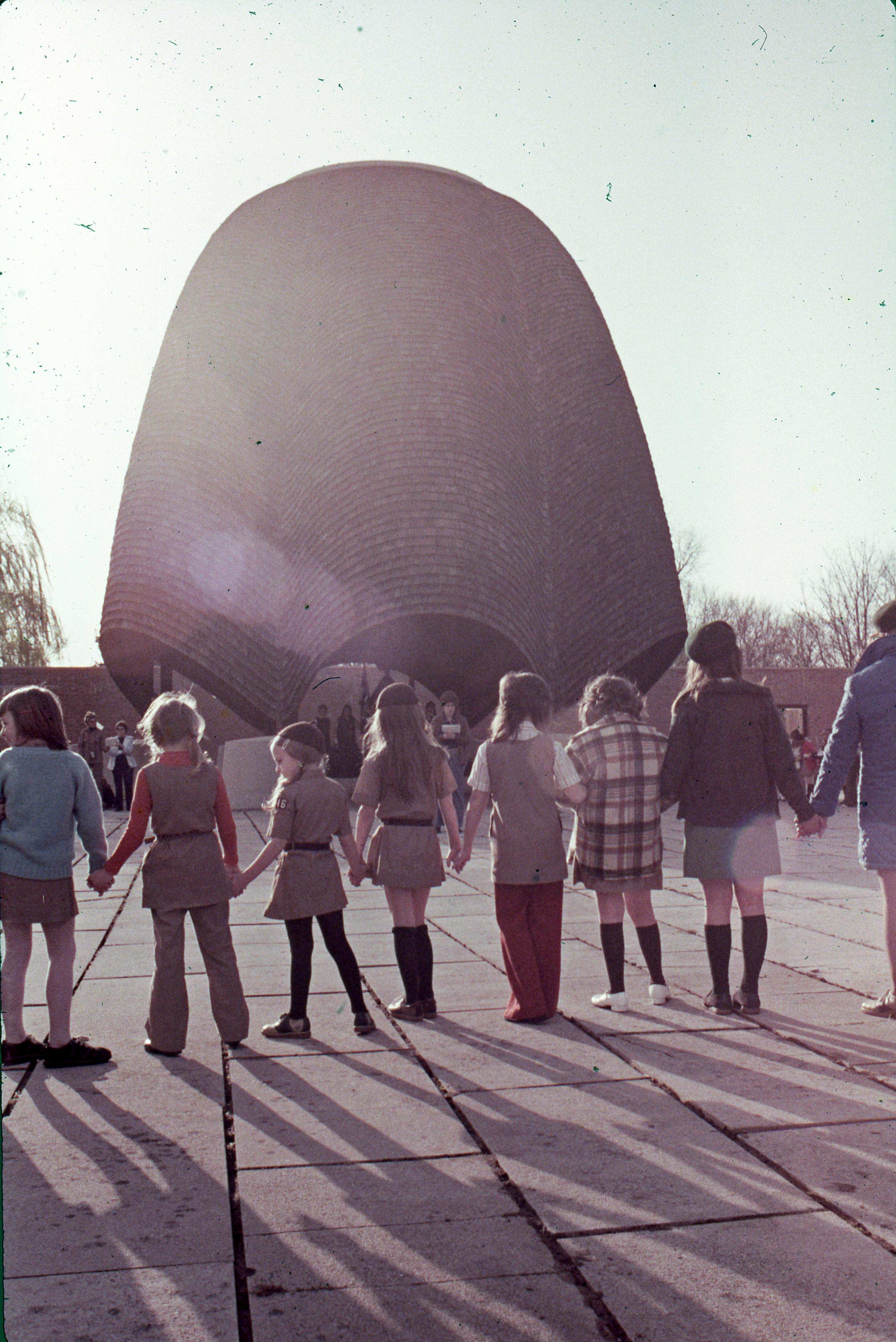 Group of children at ceremony in Roofless Church. The Roofless Church is located at 420 and was commissioned by the late Jane Blaffer Owen and built by architect Philip Johnson. The inter-faith church was dedicated in 1960 and is open to the public.