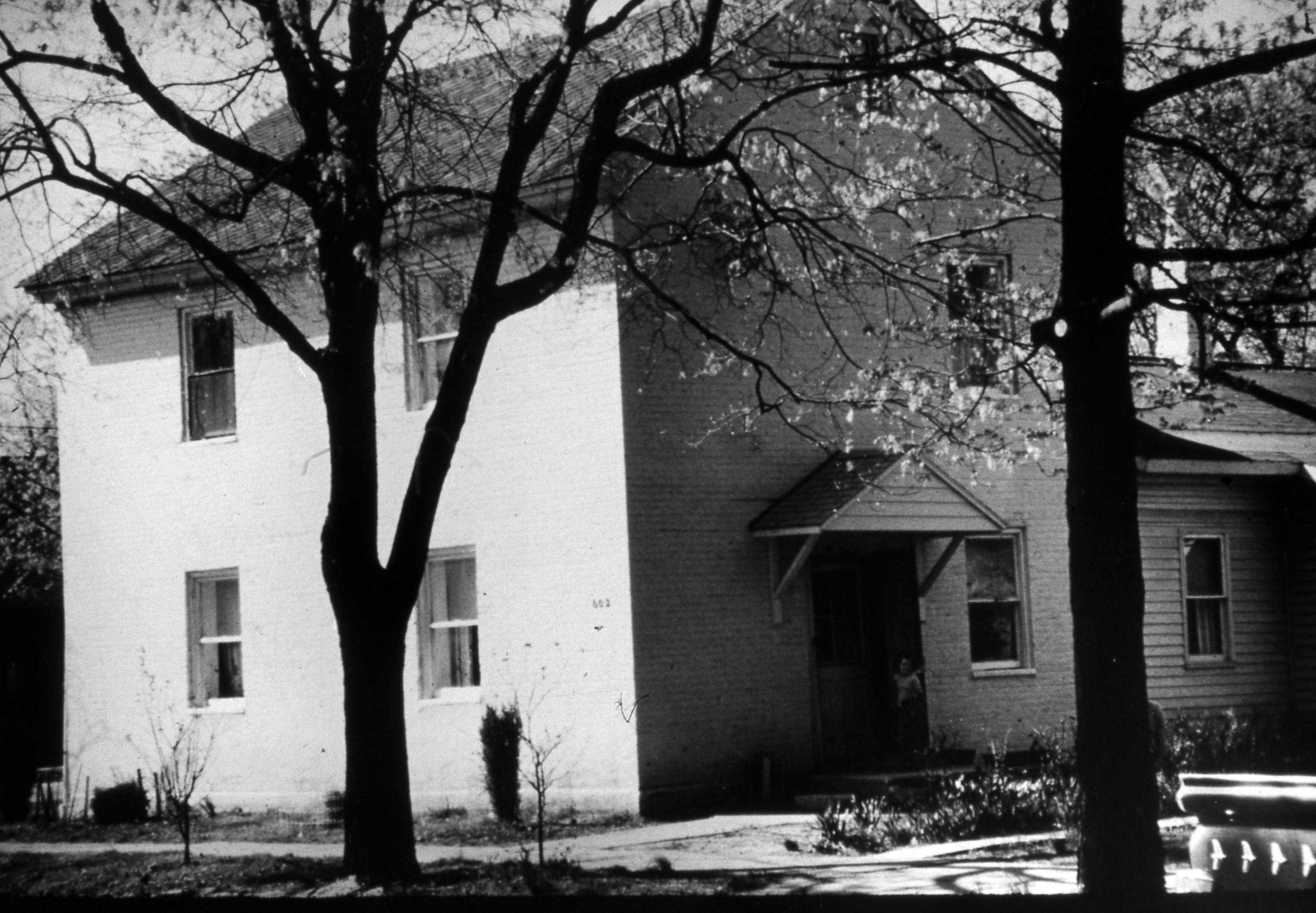 Scholle House: The Scholle House is located at 604 Tavern Street. The house originally belonged to Mathias Scholle, an original Harmonist settler, who was a shoe maker. This building still sits in its original location at the corner of Tavern and Brewery Streets. This is an undated historic photo of the southeast corner of the house taken from Tavern Street.