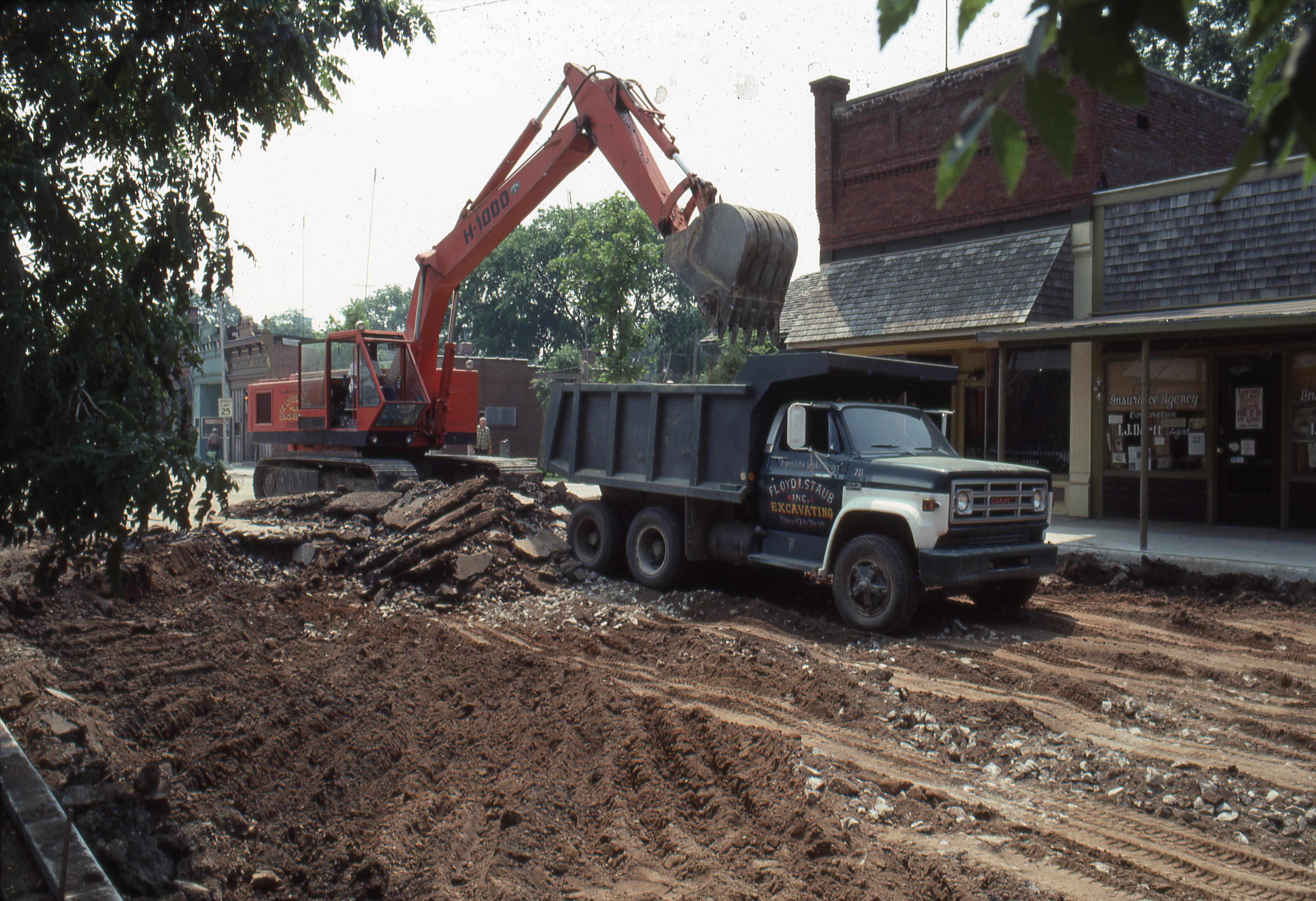 Streets: Church Street near the corner with Main Street showing the old Mott's Grocery Store building on the left.