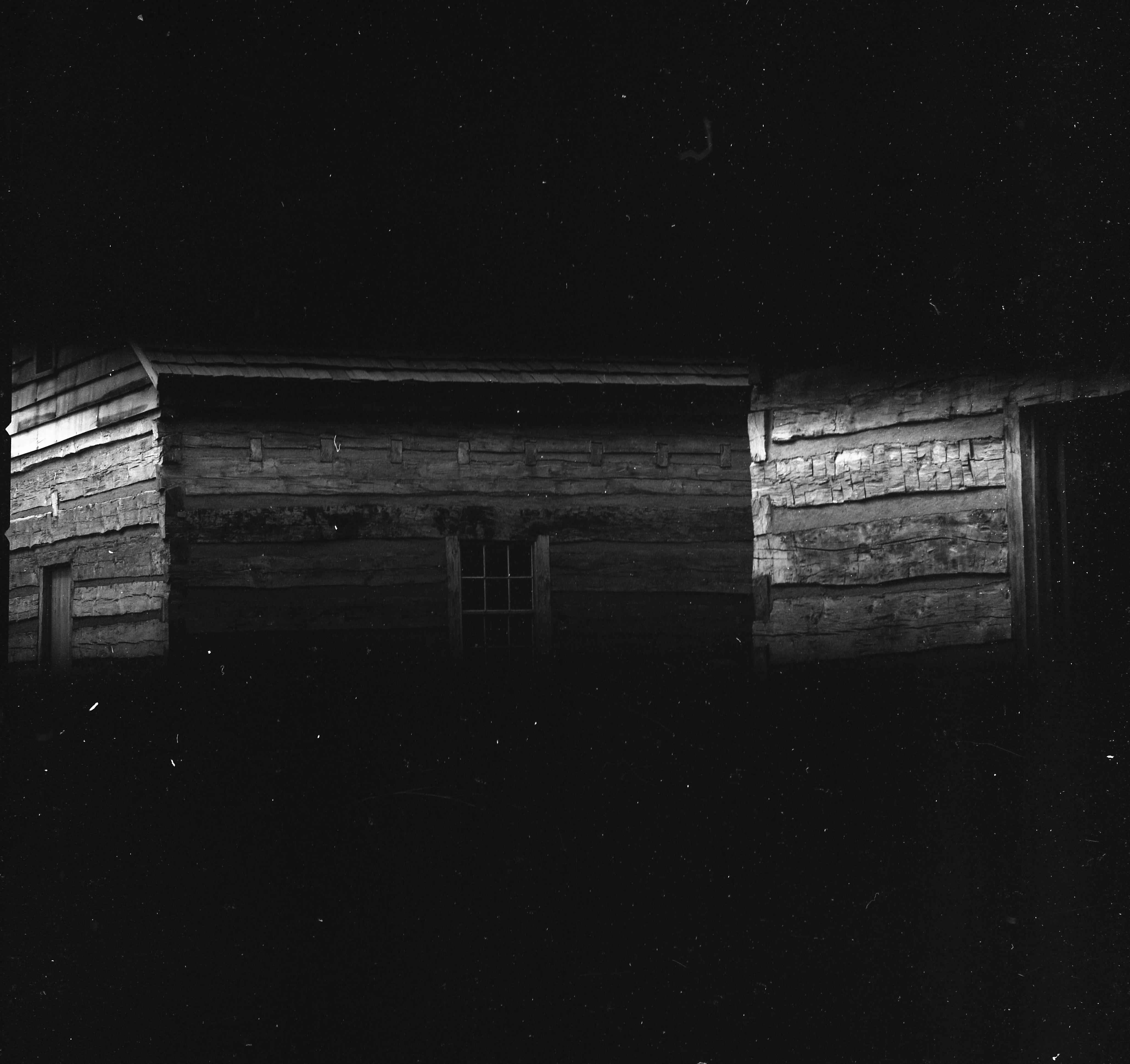 Transparencies and Negatives Collection: Historic photographs. This is a photo of the Log Houses on the southwest corner of Granary and West Streets.