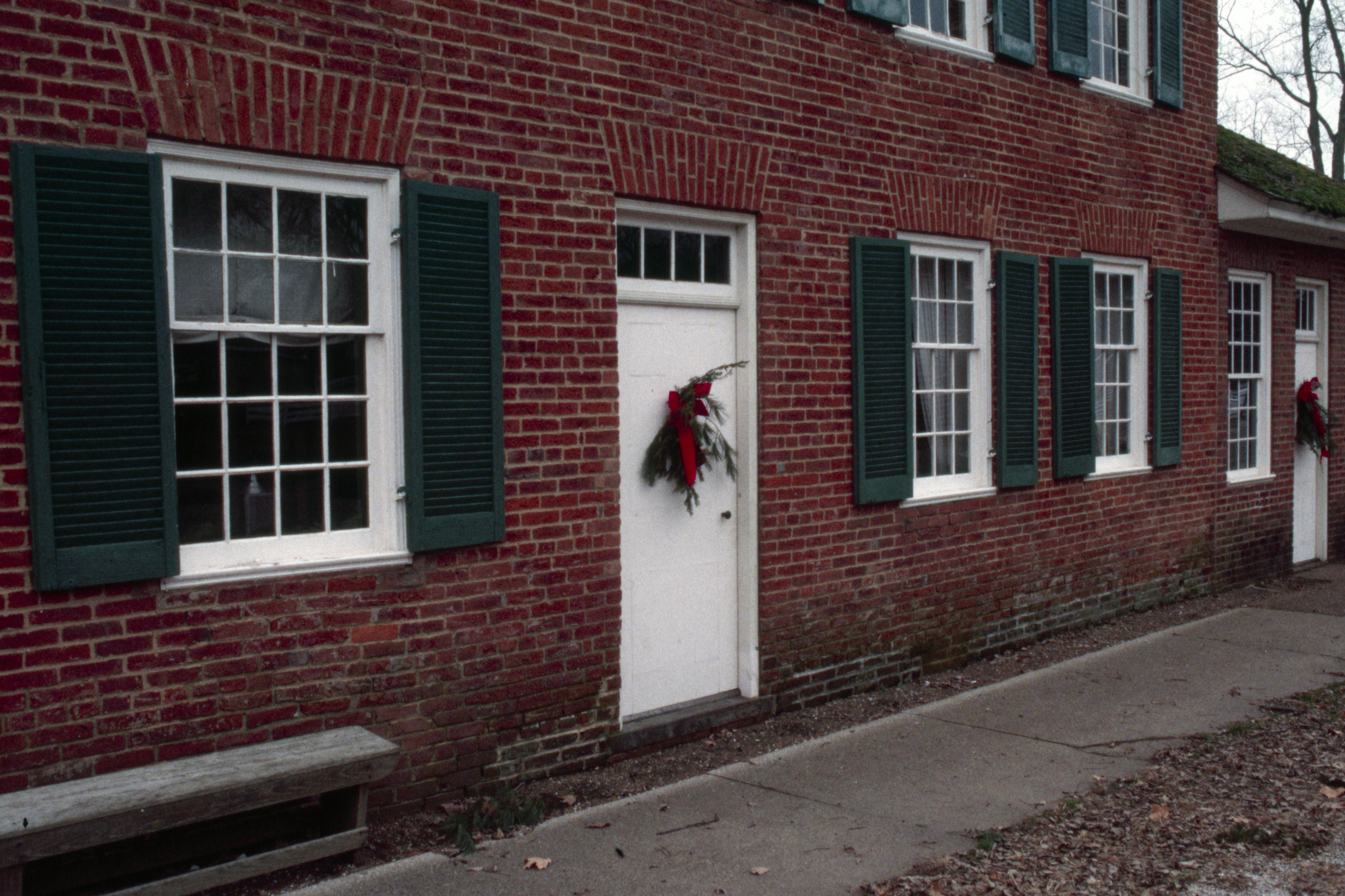 1830 Owen House: Located at 531 Tavern Street. The 1830 Owen House as decorated for Christmas. There is a sign posted by Historic New Harmony, on the east side of the house, stating this is Site 11 The 1830 Owen House.