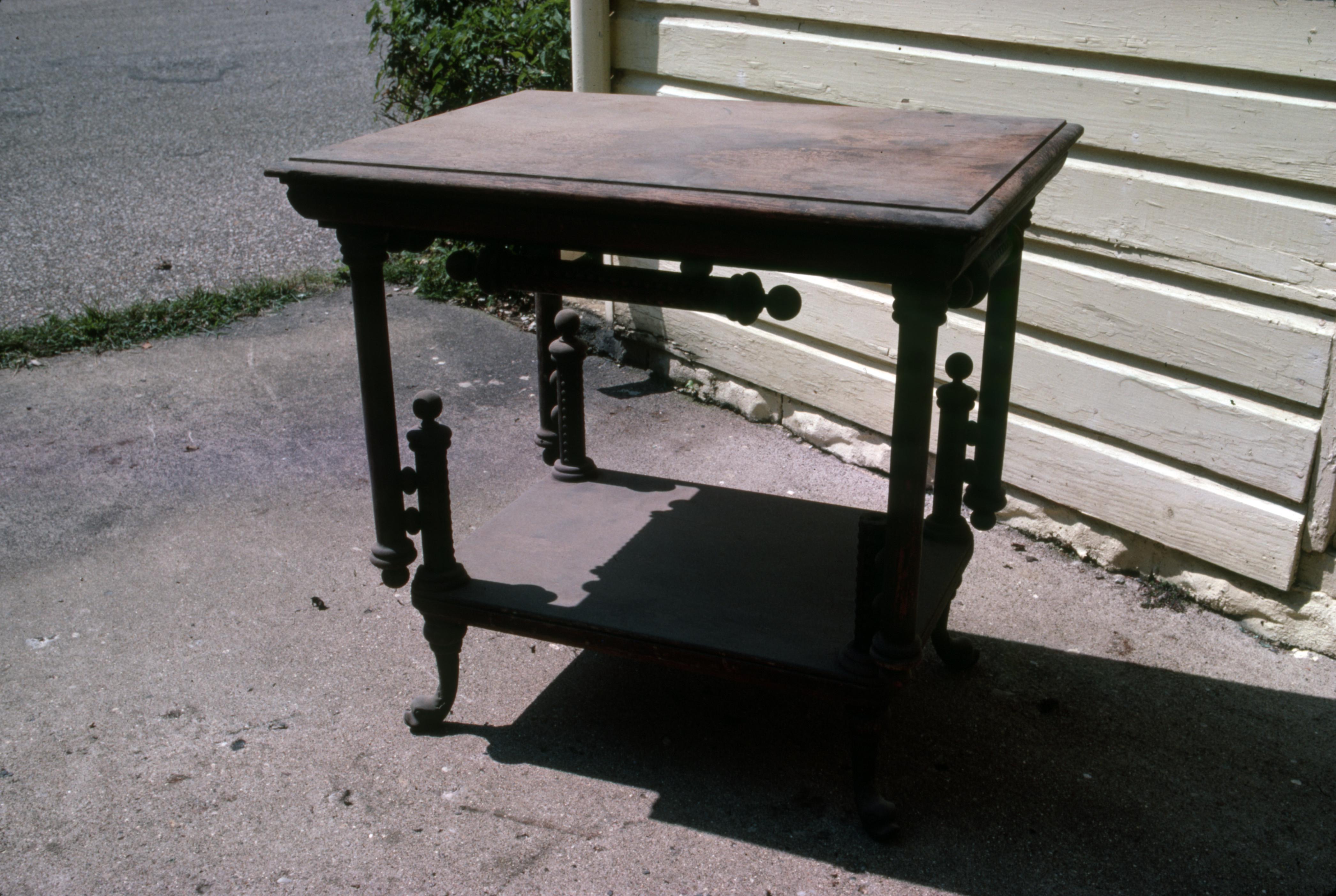 Schnee House: This photo is of the second Schnee home located at 603 West Street and was constructed in 1876. The first Schnee home was constructed during the Rappite occupation of the town, the Schnee brothers having moved to the town from the Quaker colony in Pennsylvania, and that house was located at 517 Tavern Street. The Gypsy Girl Livery Stable was later constructed behind that home. This is a unique small parlor table found in the house.