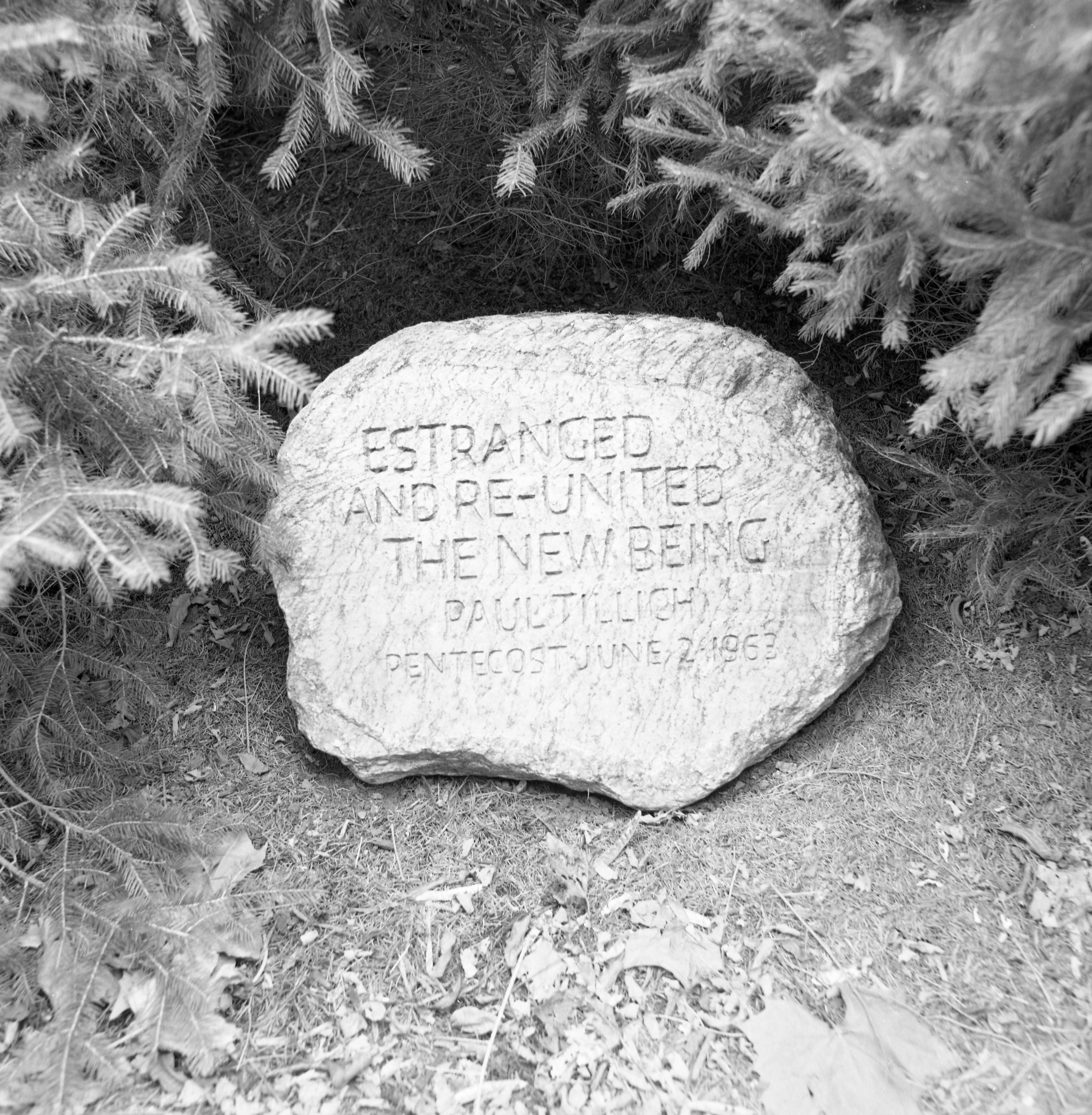 Transparencies and Negatives Collection: Historic photographs. This is a photo of a dedication stone at the Paul Tillich Park.