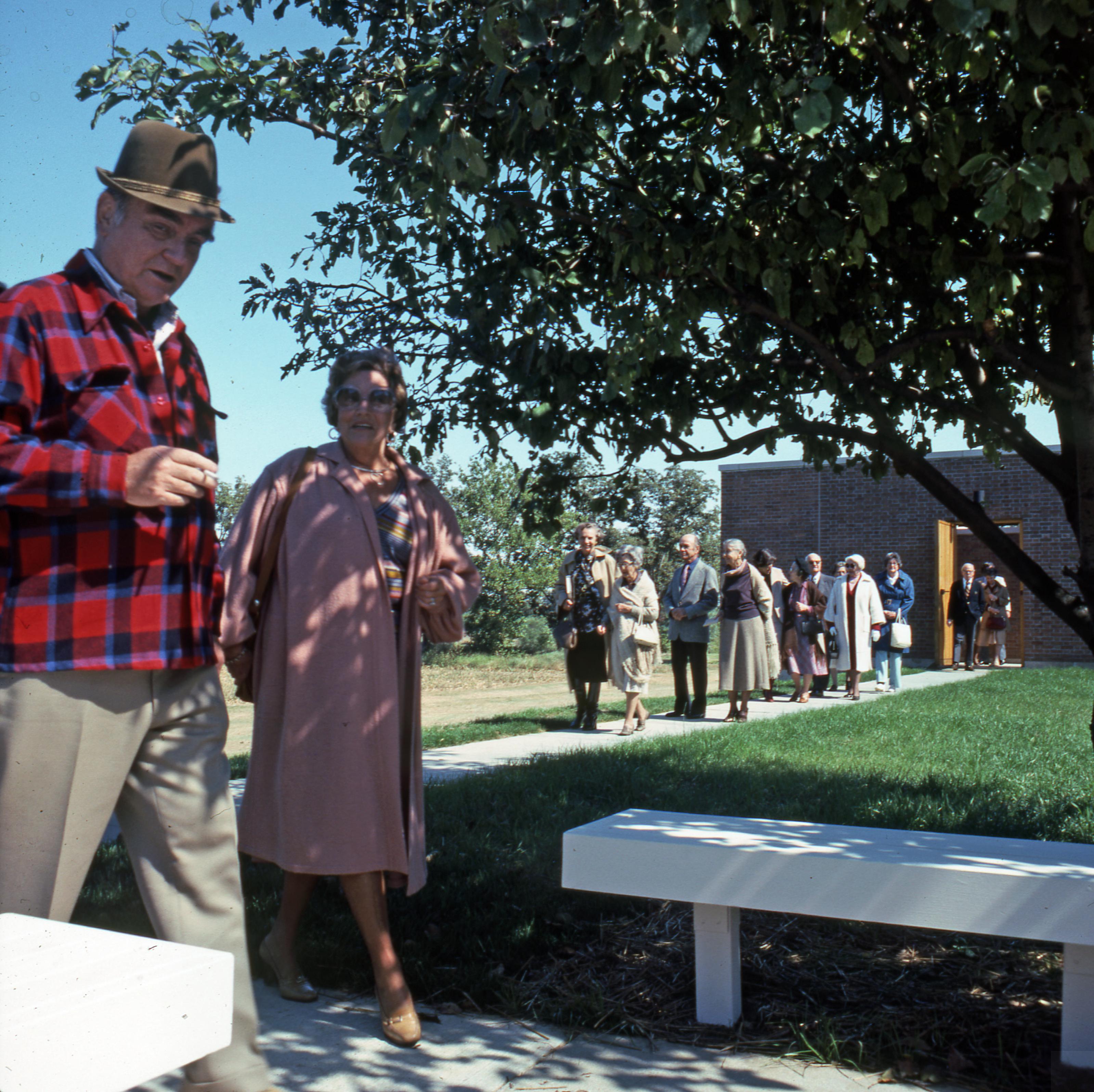 Dedication of the Sarah Campbell Blaffer Potter�s Cabin. The cabin was constructed by Jane Blaffer Owen in honor of her mother, Sarah Campbell Blaffer. The cabin is located at 402.
