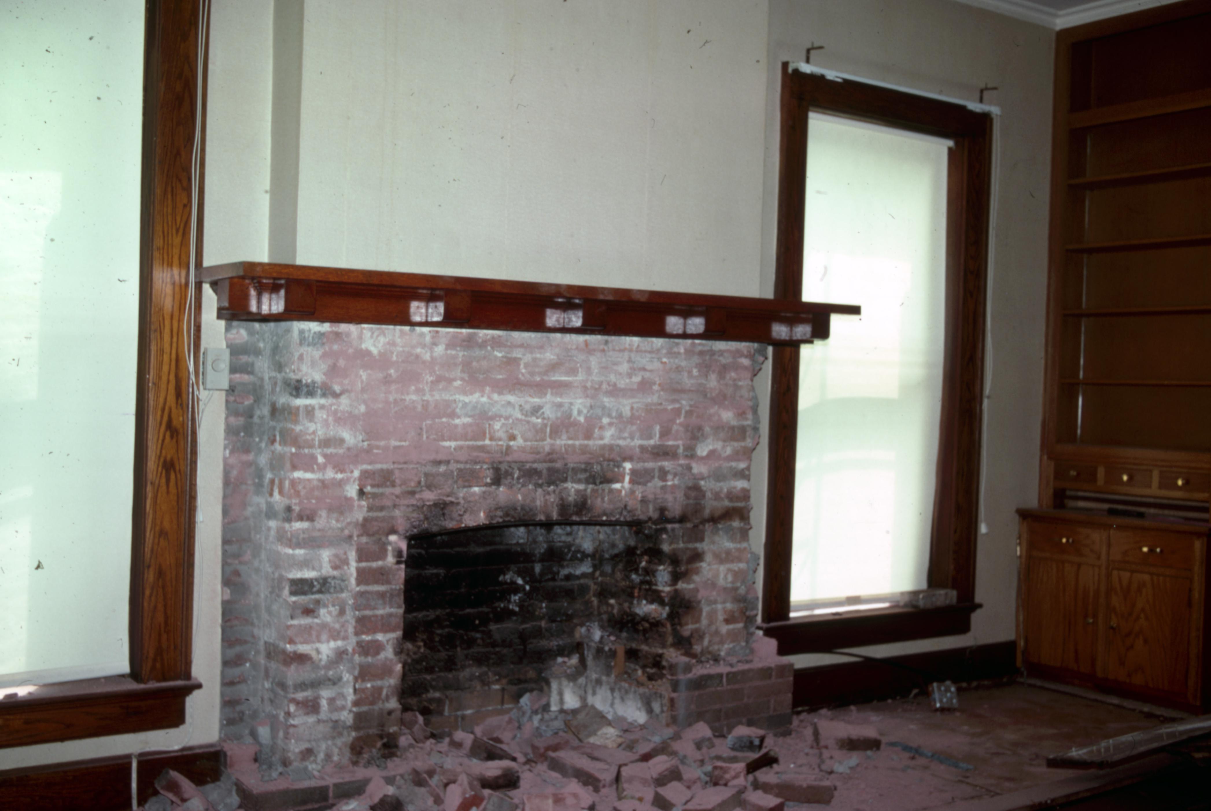 Schnee House: This photo is of the second Schnee home located at 603 West Street and was constructed in 1876. The first Schnee home was constructed during the Rappite occupation of the town, the Schnee brothers having moved to the town from the Quaker colony in Pennsylvania, and that house was located at 517 Tavern Street. The Gypsy Girl Livery Stable was later constructed behind that home. Restoration work on one of the fireplaces in the house.