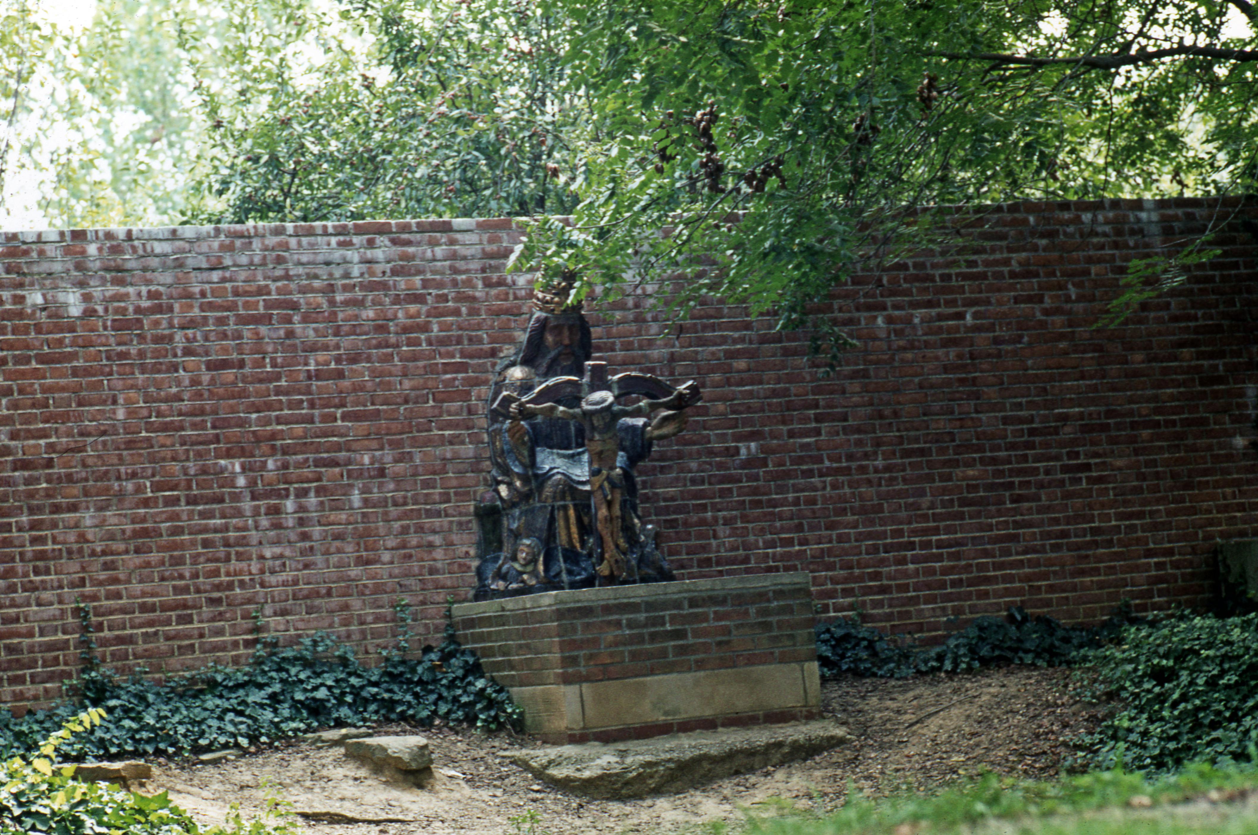 The Polish Memorial, ceramic sculpture by Eva Sygulska inside the Roofless Church. The Roofless Church is located at 420 and was commissioned by the late Jane Blaffer Owen and built by architect Philip Johnson. The inter-faith church was dedicated in 1960 and is open to the public.