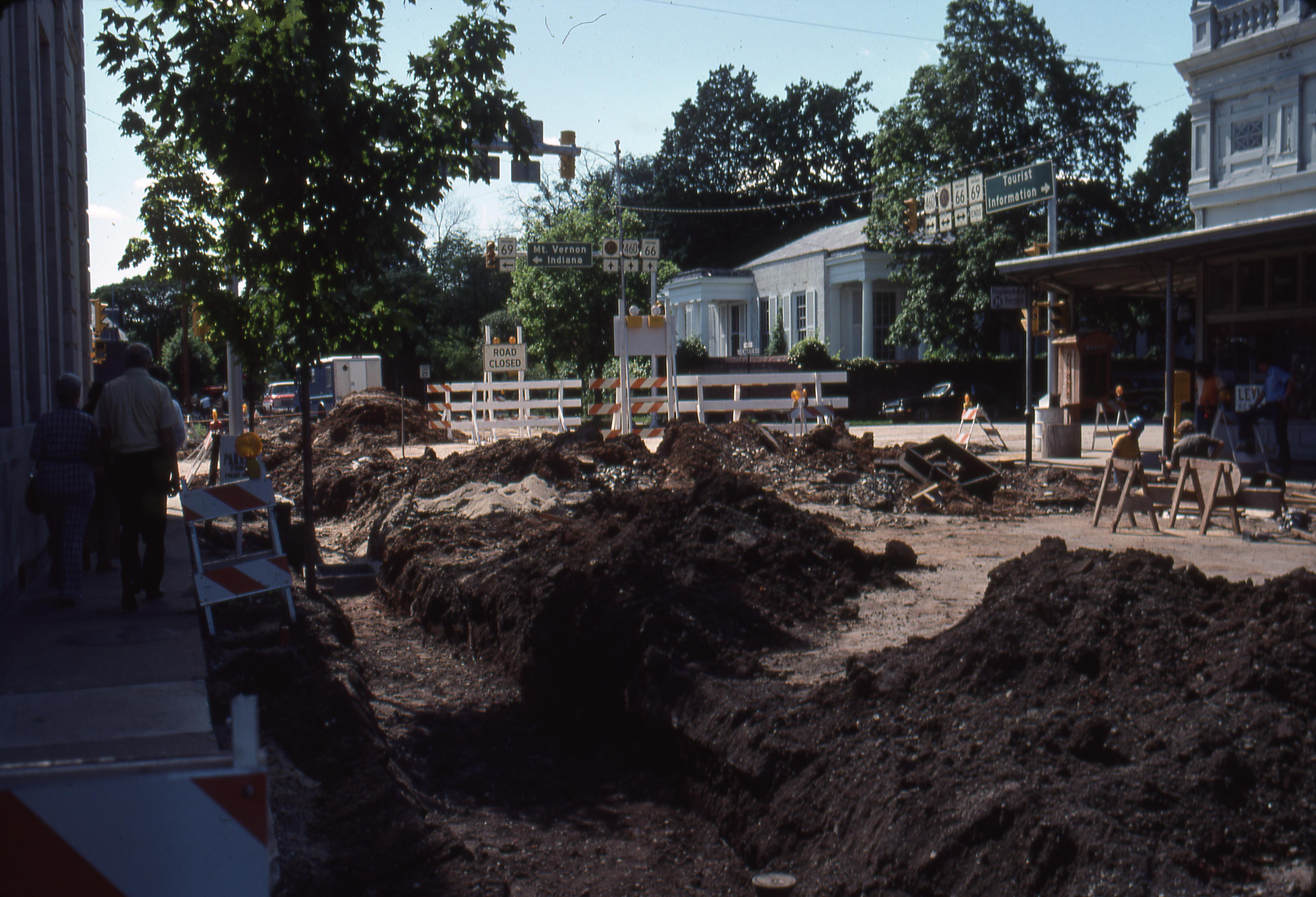 Streets: Church Street beside the New Harmony Bank near the corner with Main Street. This photo shows the street during the replacement.