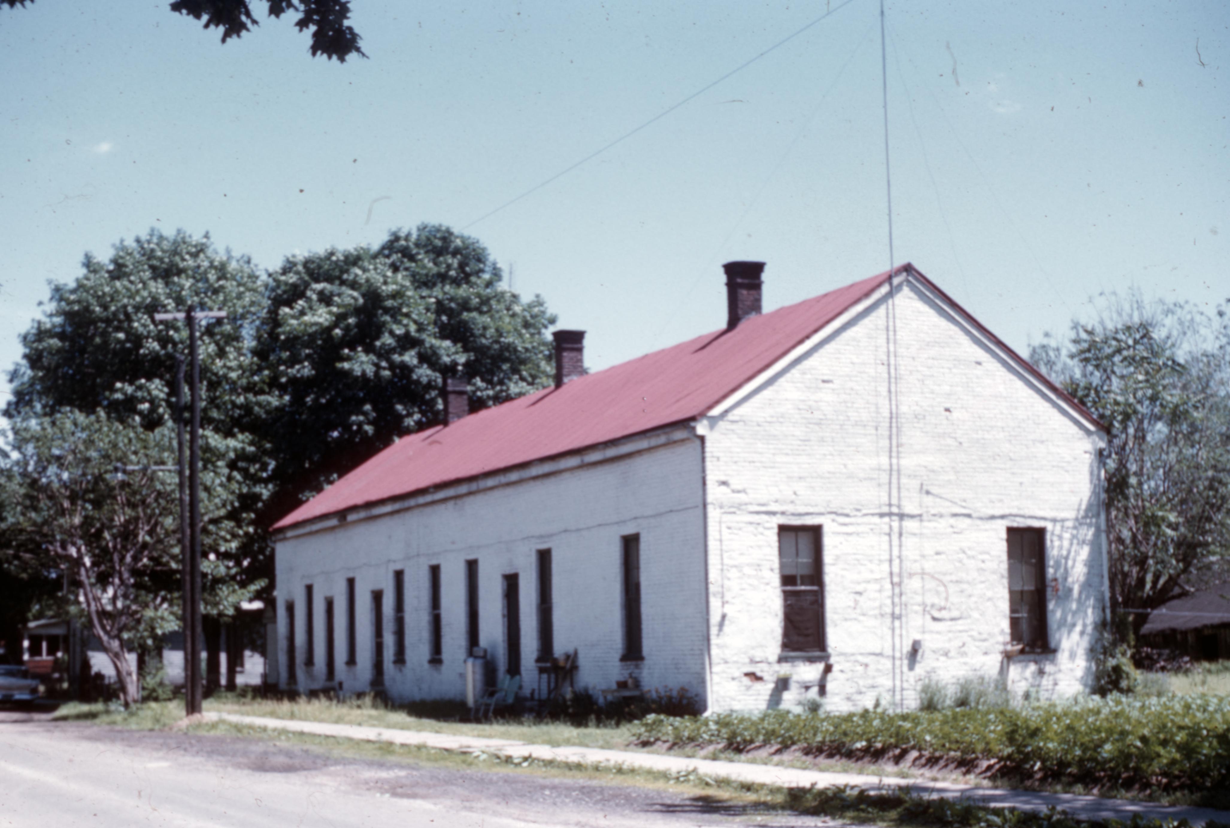 Loi Mueller Collection: Titled on the slide as Malt House. This structure is present on the 1907 Sanborn Fire Insurance map as a brick 3 dwelling building. It is no longer present as of 2020.