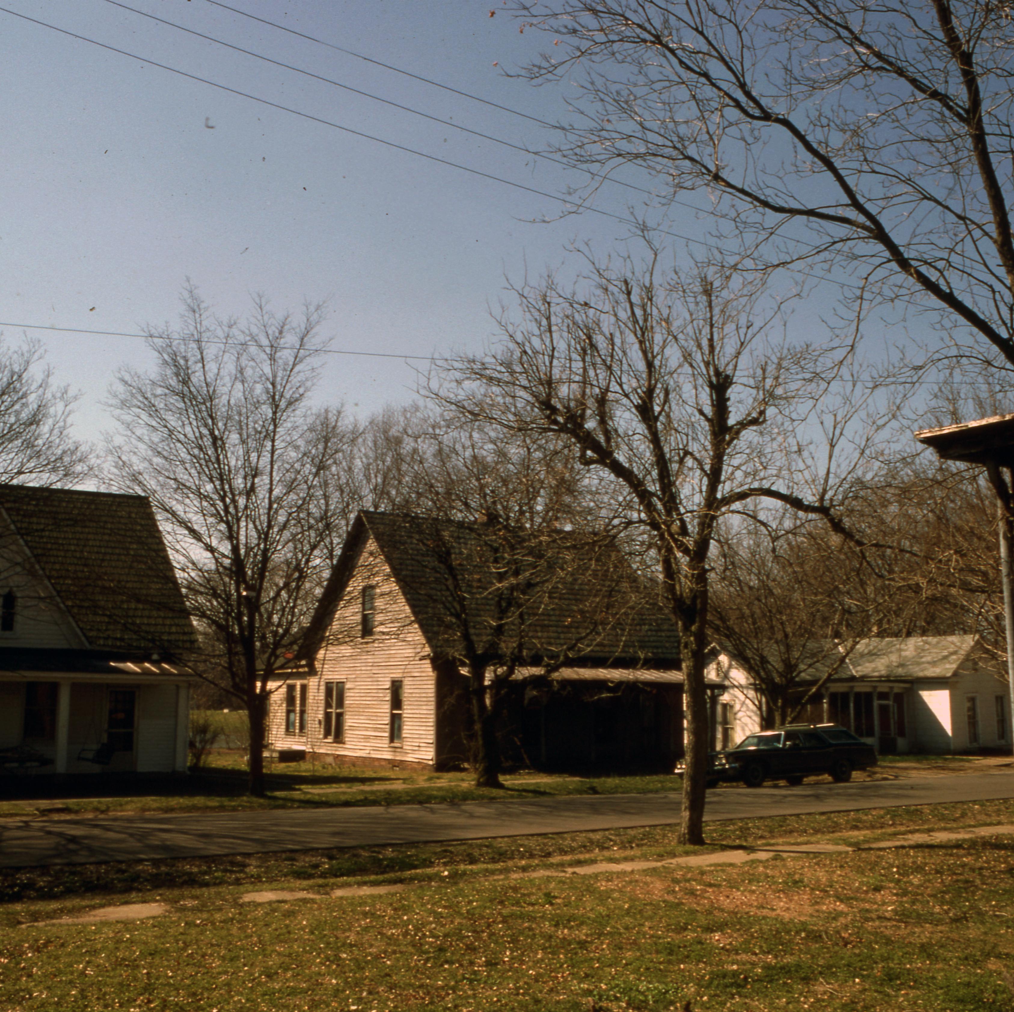 Rhodes House: This house is located at 611 Arthur Street and was present by at least 1907. The Rhodes House had sat abandoned for many years before restoration work was undertaken. This photo shows the house just before restoration work had begun and faces northwest across Arthur Street.