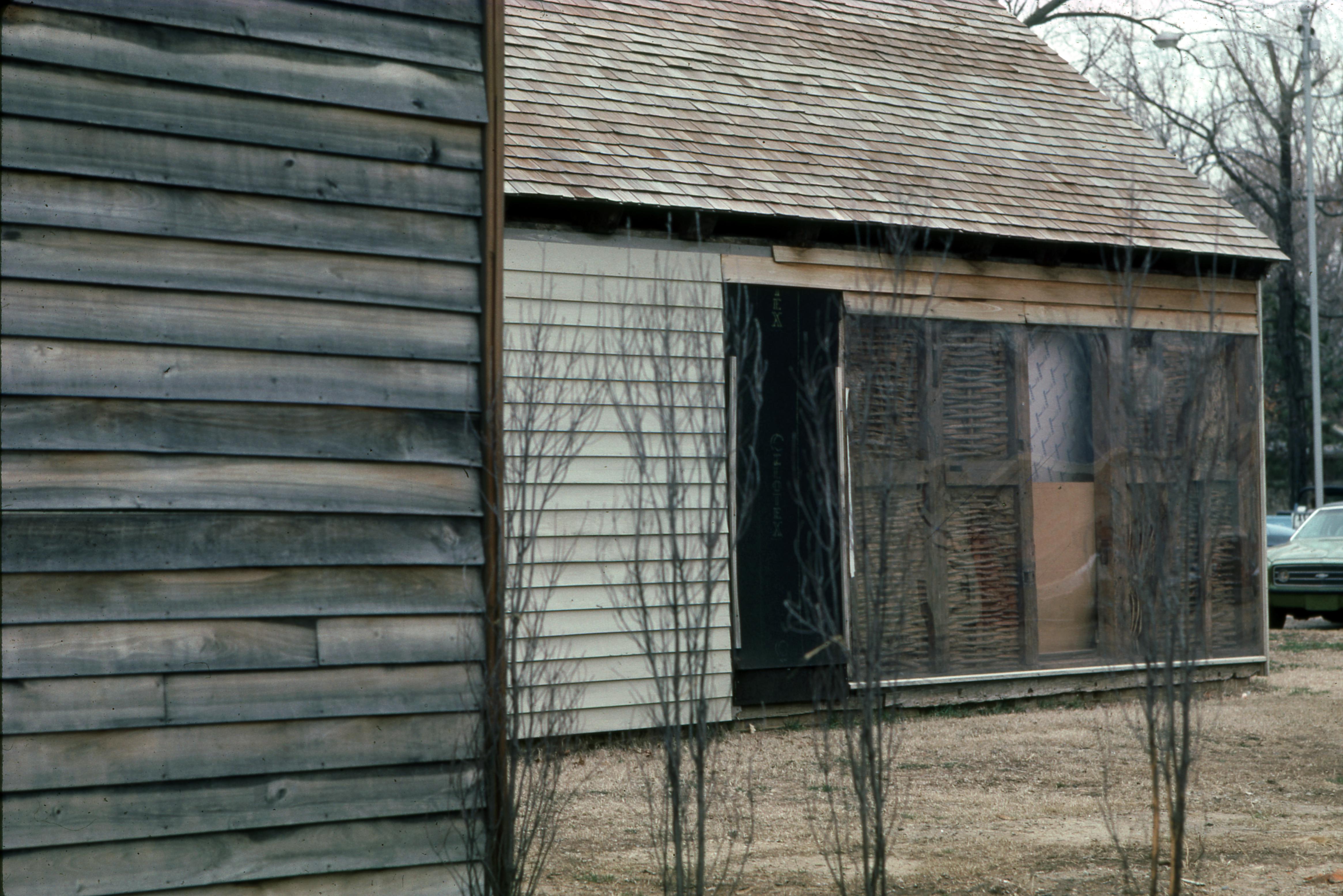 Beal House: The Beal House was moved during the Lanark Construction, on Town Block 8 E/W on Main Street to 611 Church Street. The Beal house was constructed around 1829 by John Beal, who was a carpenter in the Owen and Maclure community. Beal constructed the house from lumber and timbers from an older horse barn. The new location would be the site of the Beal House and 1850s Doctor's Office (The Doctor's Office was a remodel of the Kemmerling House, which was also moved to this site). Elmer Buchta Moving Engineers was contracted for this and many other building moves during the 1970s. This photo shows the back of the Beal and Kemmerling House, later the 1850s Doctor's Office (a gift of Mead Johnson) facing toward the east.