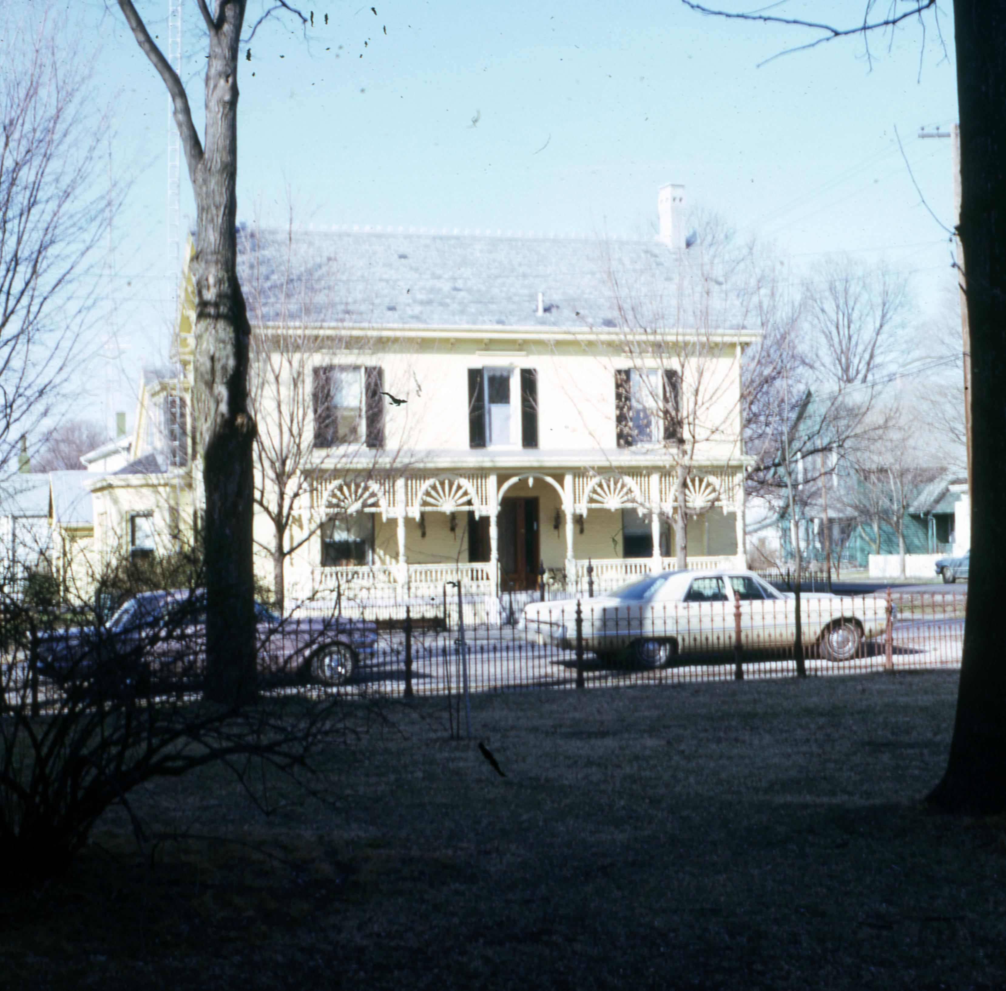 Schnee House: This photo is of the second Schnee home located at 603 West Street and was constructed in 1876. The first Schnee home was constructed during the Rappite occupation of the town, the Schnee brothers having moved to the town from the Quaker colony in Pennsylvania, and that house was located at 517 Tavern Street. The Gypsy Girl Livery Stable was later constructed behind that home. This is the east side of the house after the porch was replaced. Photo was taken from across West Street in the gardens surrounding the Working Men's Institute facing toward the west.