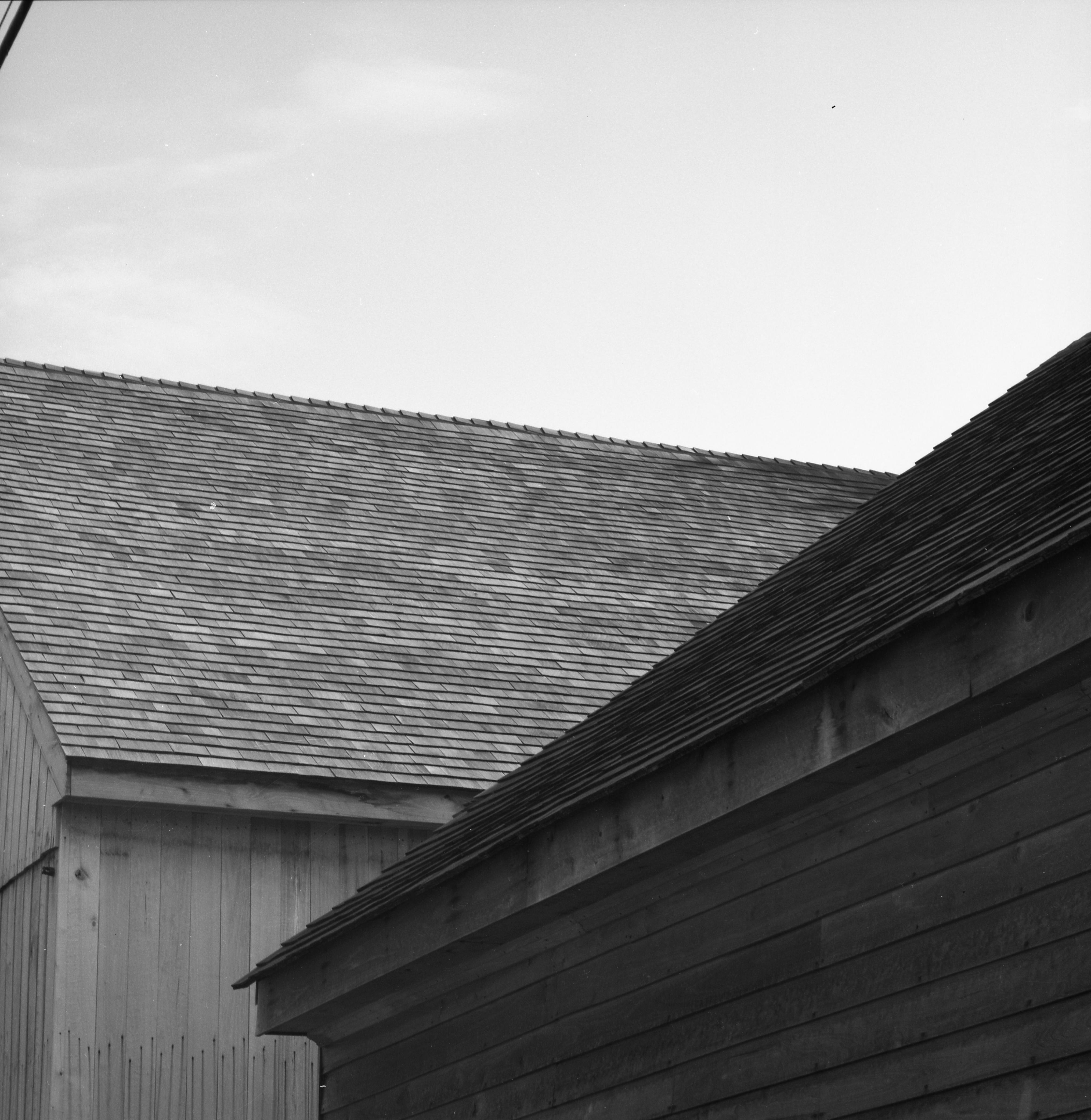 Transparencies and Negatives Collection: Historic photographs. This is a photo showing the west side of the Cooper shop and Theater Barn.
