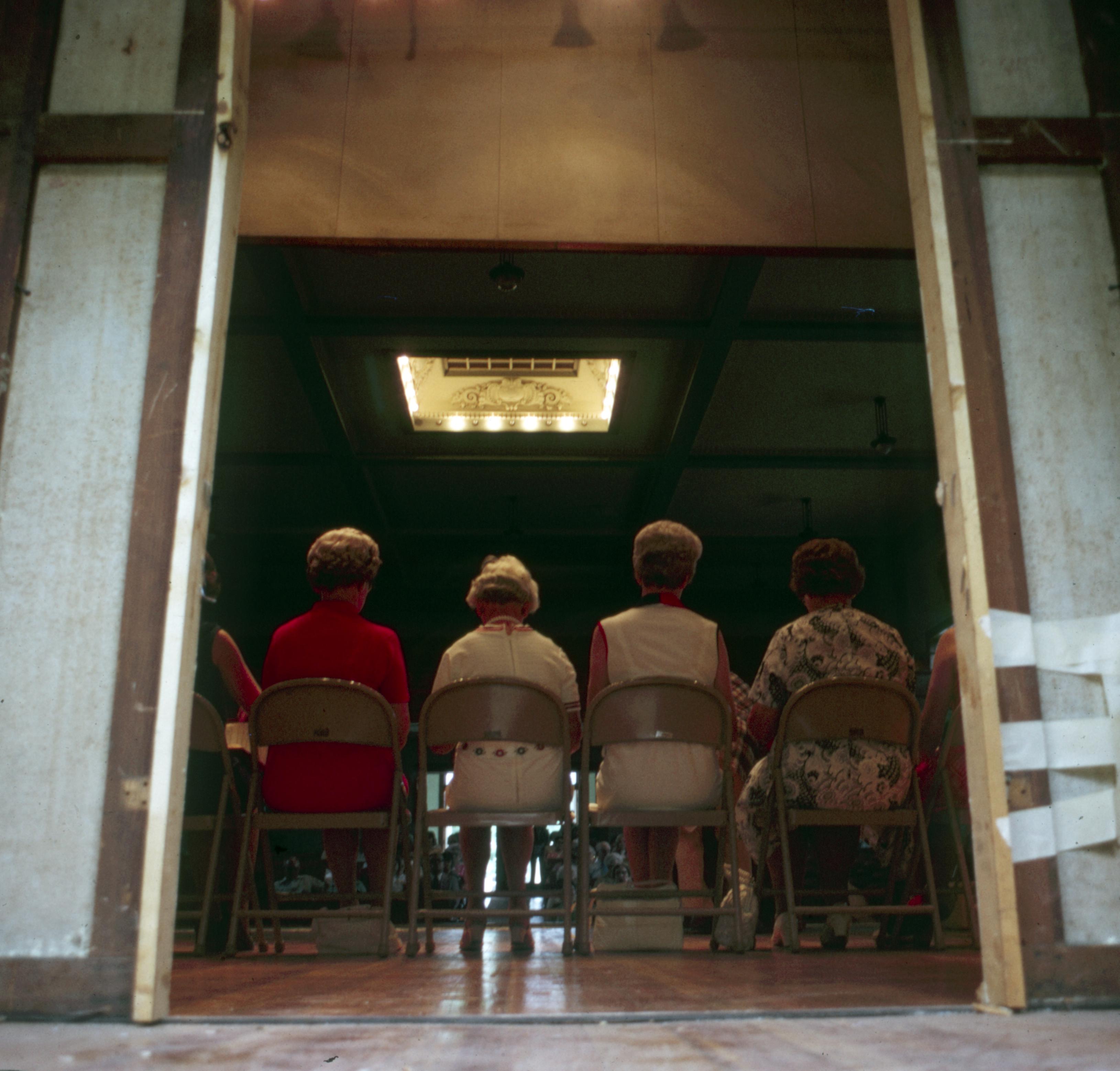 Murphy Auditorium: Murphy Auditorium is located at 419 Tavern Street and was constructed on the plat just east of the Working Men's Institute from 1911 to 1913, using the Doctor Edward Murphy Fund, and was built as part of New Harmony's centennial celebration of 1914. In 2014, the town's bicentennial, Murphy Auditorium became the new home of the concert series Under The Beams, originally housed in the Rapp-Owen Granary. Today, the auditorium is owned by the University of Southern Indiana and is the home of The New Harmony Theater with a seating capacity of 360 people. This photo is of a choir giving a concert, at the Guild Of Guides tree dedication, from the open stage door behind the building.