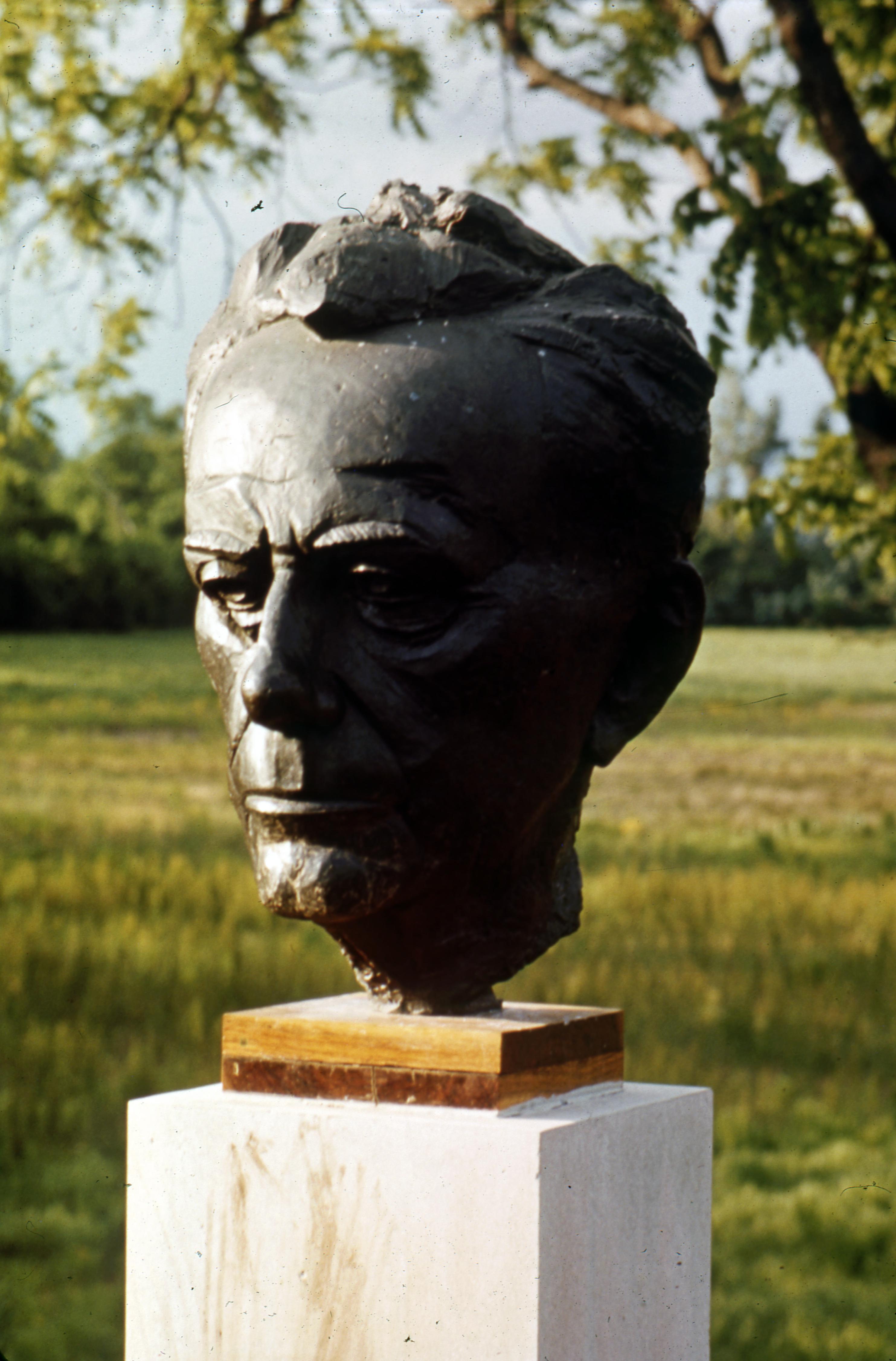 Bust of Paul Tillich created by sculptor James Rosati located in Tillich Park. Tillich Park commemorates philosopher and theologian Paul Johannes Tillich. The park was dedicated on June 2, 1963, and Tillich�s ashes were interred there in 1965. The park is located east of The Roofless Church on north. The property is owned by The Robert Lee Blaffer Foundation. Photograph taken by James K. Mellow.