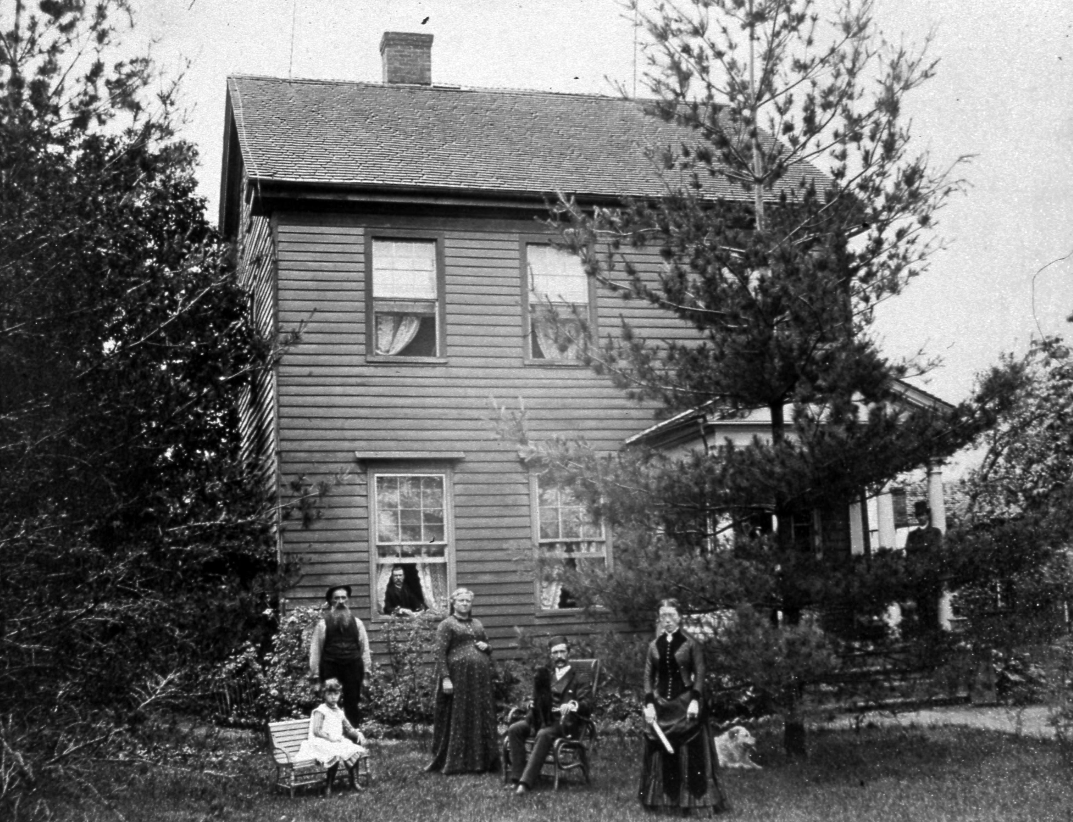 Golden Family: Historic photo of the Golden Family at the old home site. The house was moved from the plat of 807 Church, what is now 811 Church Street, to one plat west of 723 E. Church Street but has since been demolished.