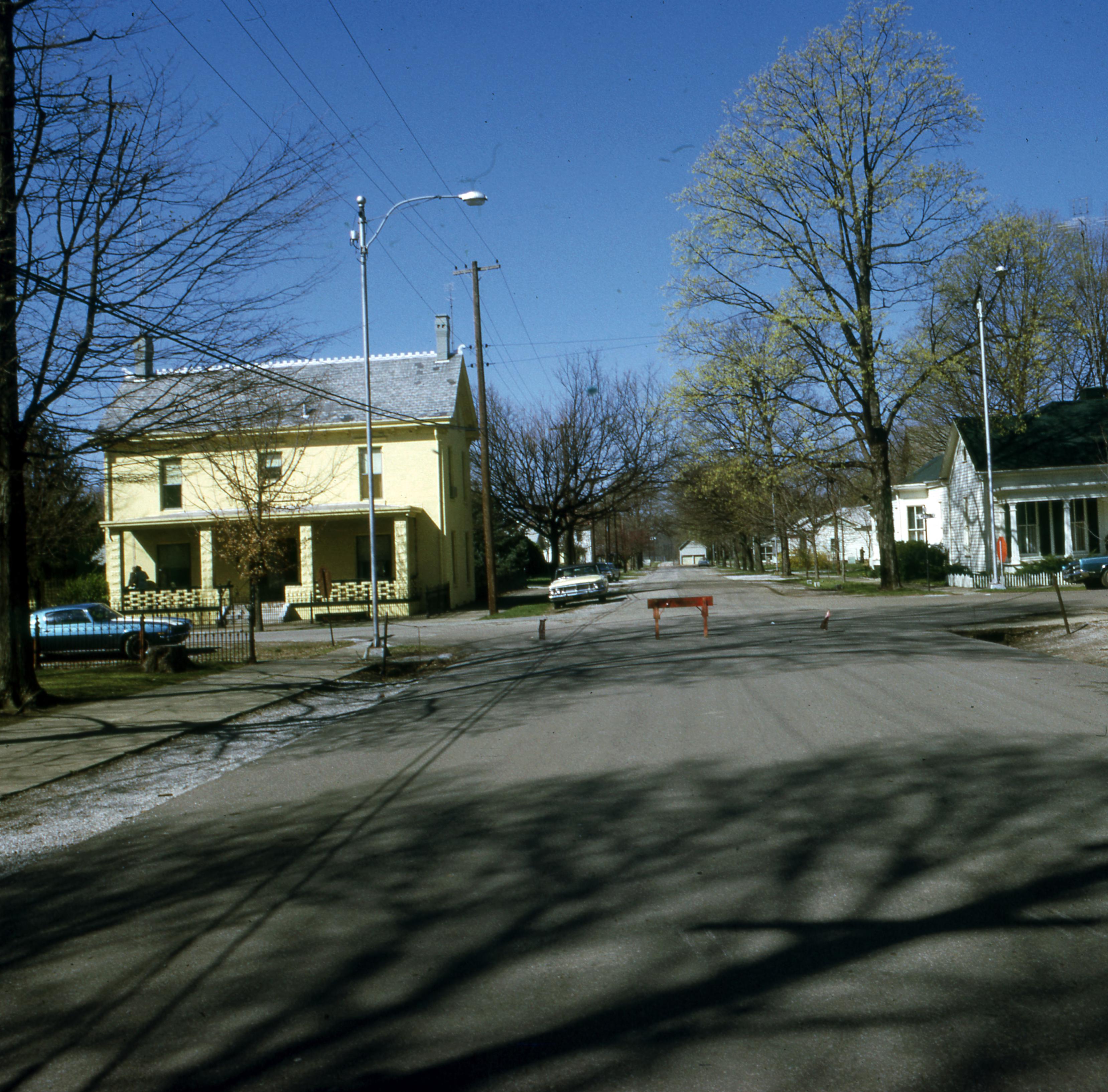 Schnee House: This photo is of the second Schnee home located at 603 West Street and was constructed in 1876. The first Schnee home was constructed during the Rappite occupation of the town, the Schnee brothers having moved to the town from the Quaker colony in Pennsylvania, and that house was located at 517 Tavern Street. The Gypsy Girl Livery Stable was later constructed behind that home. This photo of the Schnee House was taken from Tavern Street facing west.
