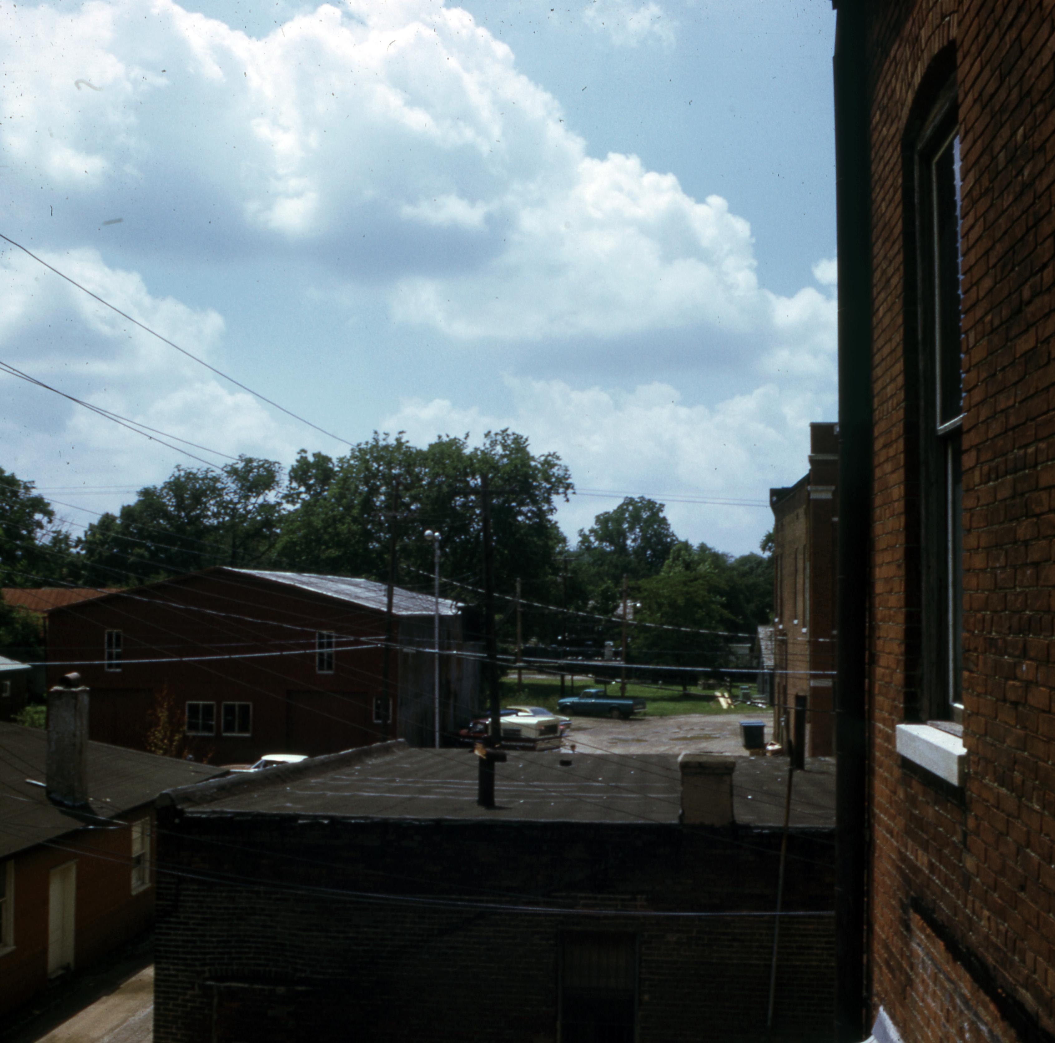 Back plats: This photo was taken, facing south, from the back of the Ribeyre Building. The I.O.O.F. Building can just be seen on, on the right side of the photo, across Tavern Street. The buildings on the left side of the photo were later demolished.
