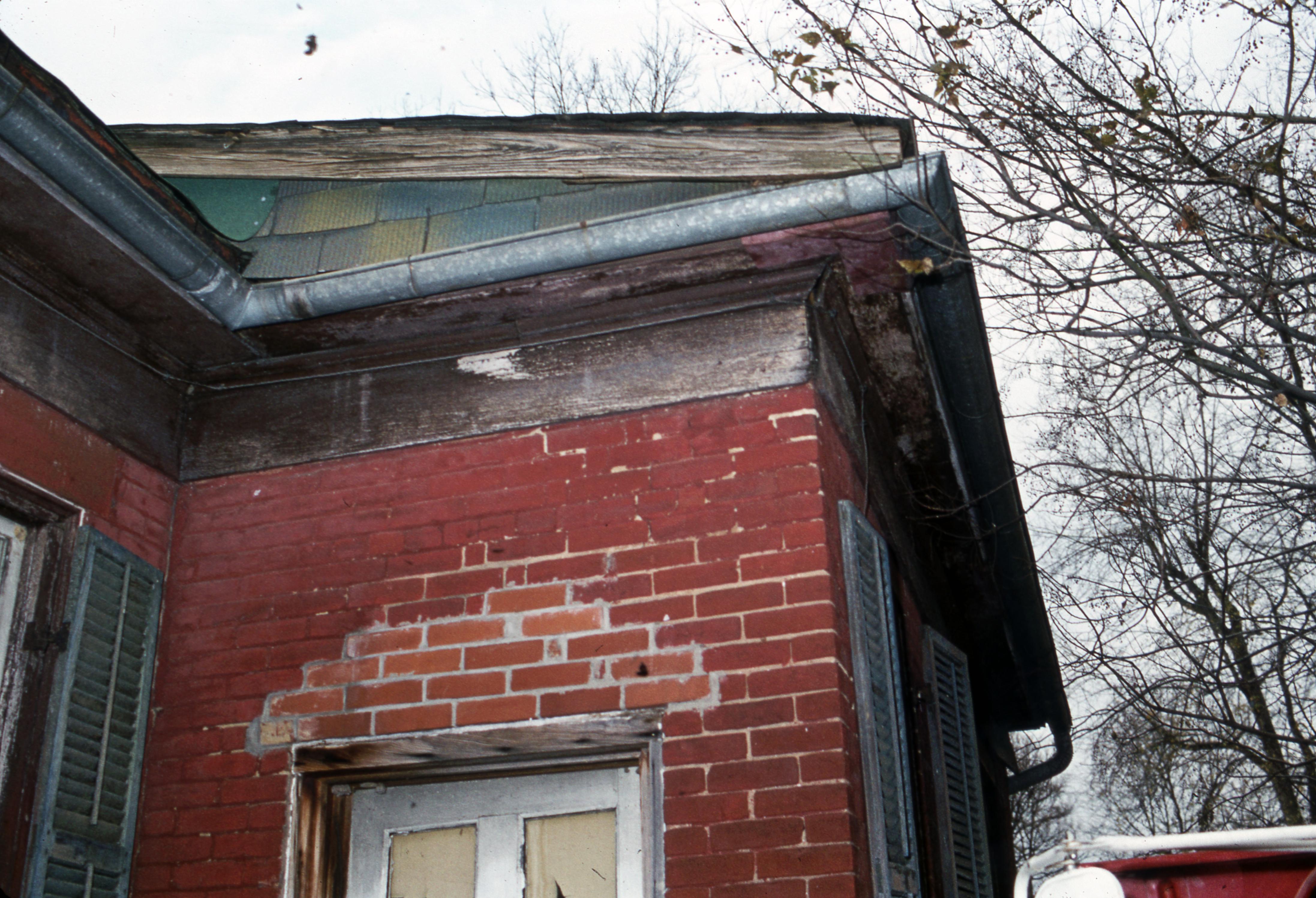 Patterson House: Located at 682 Arthur Street and built in 1850. This photo shows the underside of the eaves as well as the old tin gutters which likely date to the nineteenth century. The small east wall addition, on the right side of the photo, was demolished.