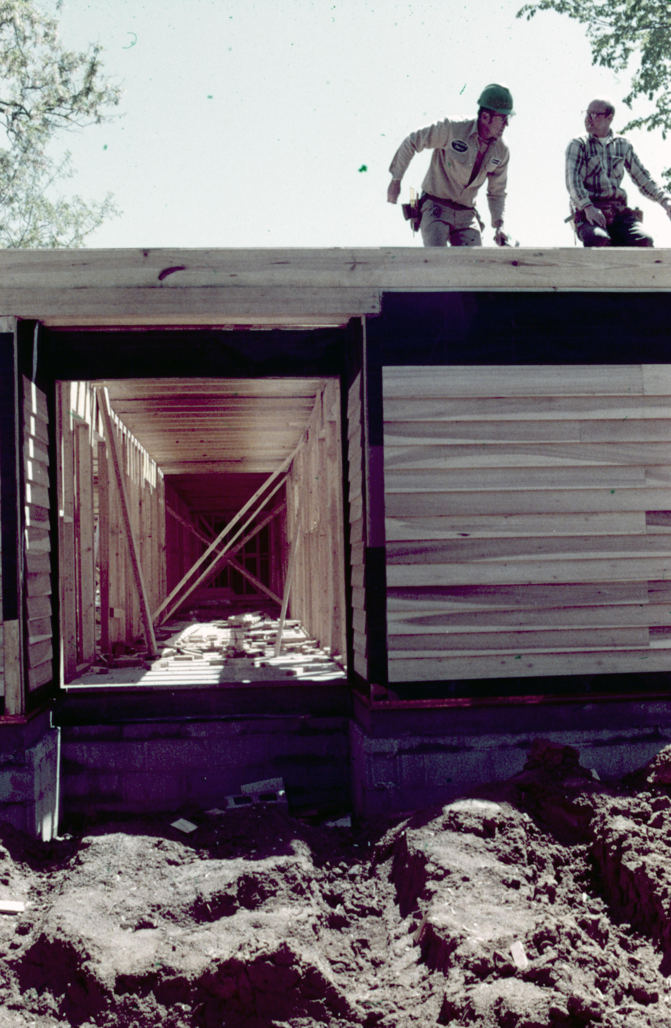 Tree of Life Clinic And Hospital Collection: This building was constructed and located at 510 South Street. This building has been demolished and is no longer present as of 2020. Men working on the building's rafters.