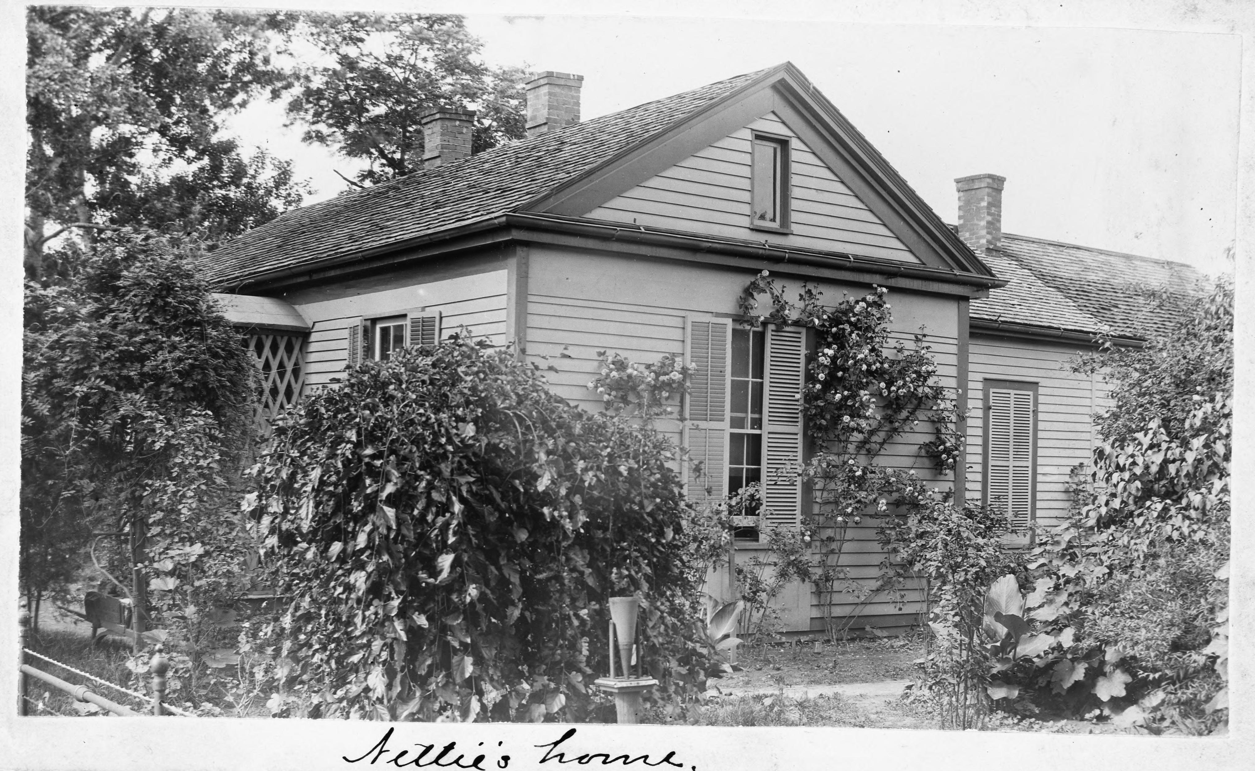 Transparencies and Negatives Collection: Historic photographs. The Vaughn House: The house is located on the corner of Main and Steam Mill Streets and was built in 1840. This photo has a caption which reads ""Nettie's Home"".