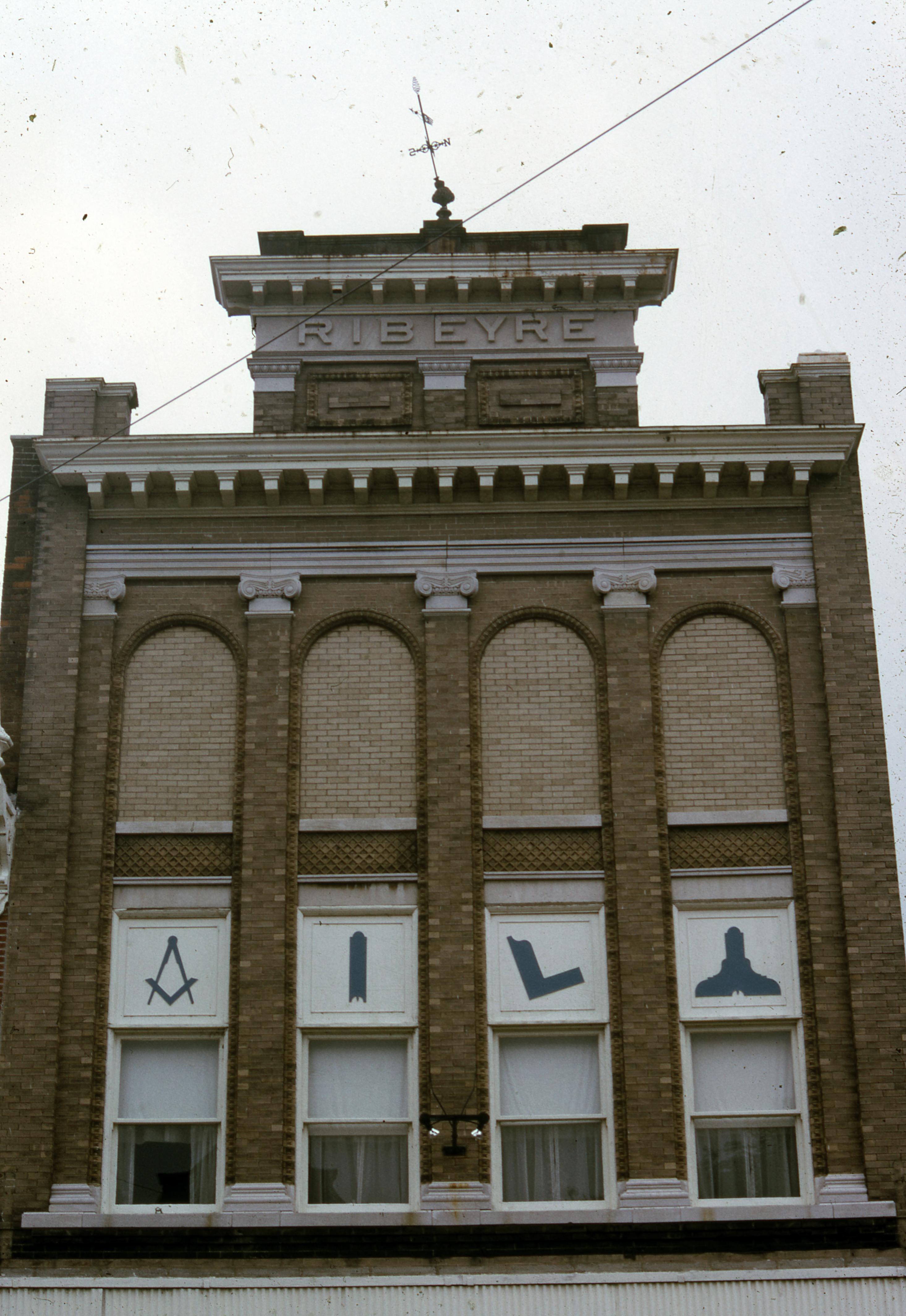 Ribeyre Building: This building also has a long history in the town. Located at 514 Main Street, like many others, the building started as a one-story wooden structure (UA58 � 7516 far right), it wasn�t until around 1900 that the old wooden building was demolished and a new three-story brick one replaced it. In 1869 the plat was owned by William Baldwin or V. C. Duclos the plat seems to straddle the line between plats owned by these two men.1888 it was listed as a tailor�s shop but was vacant by 1899. By 1907 the three-story brick building had been constructed and housed Henry Brown�s Clothing Store. The Knights of Pythias Hall was relocated to the second floor of this new building Lodge 172 of the Knights of Pythias was known as the Robert Owen Lodge. During the 1970s it was home to a five and dime type of store called Owen�s Variety. This photo shows the third floor of the building before it was renovated.