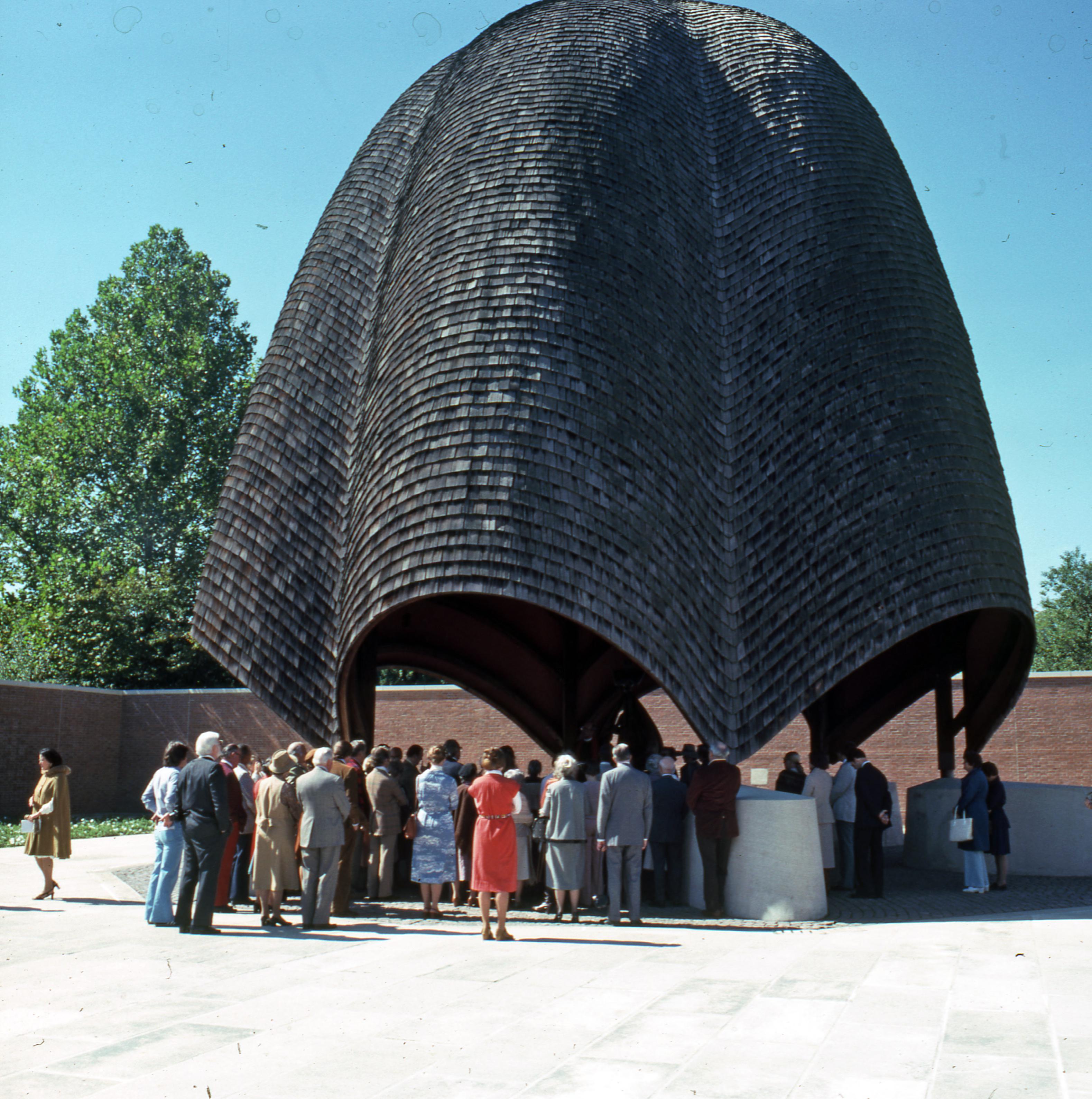 Dedication of the Sarah Campbell Blaffer Potter�s Cabin at the Roofless Church. The cabin was constructed by Jane Blaffer Owen in honor of her mother, Sarah Campbell Blaffer. The cabin is located at 402.