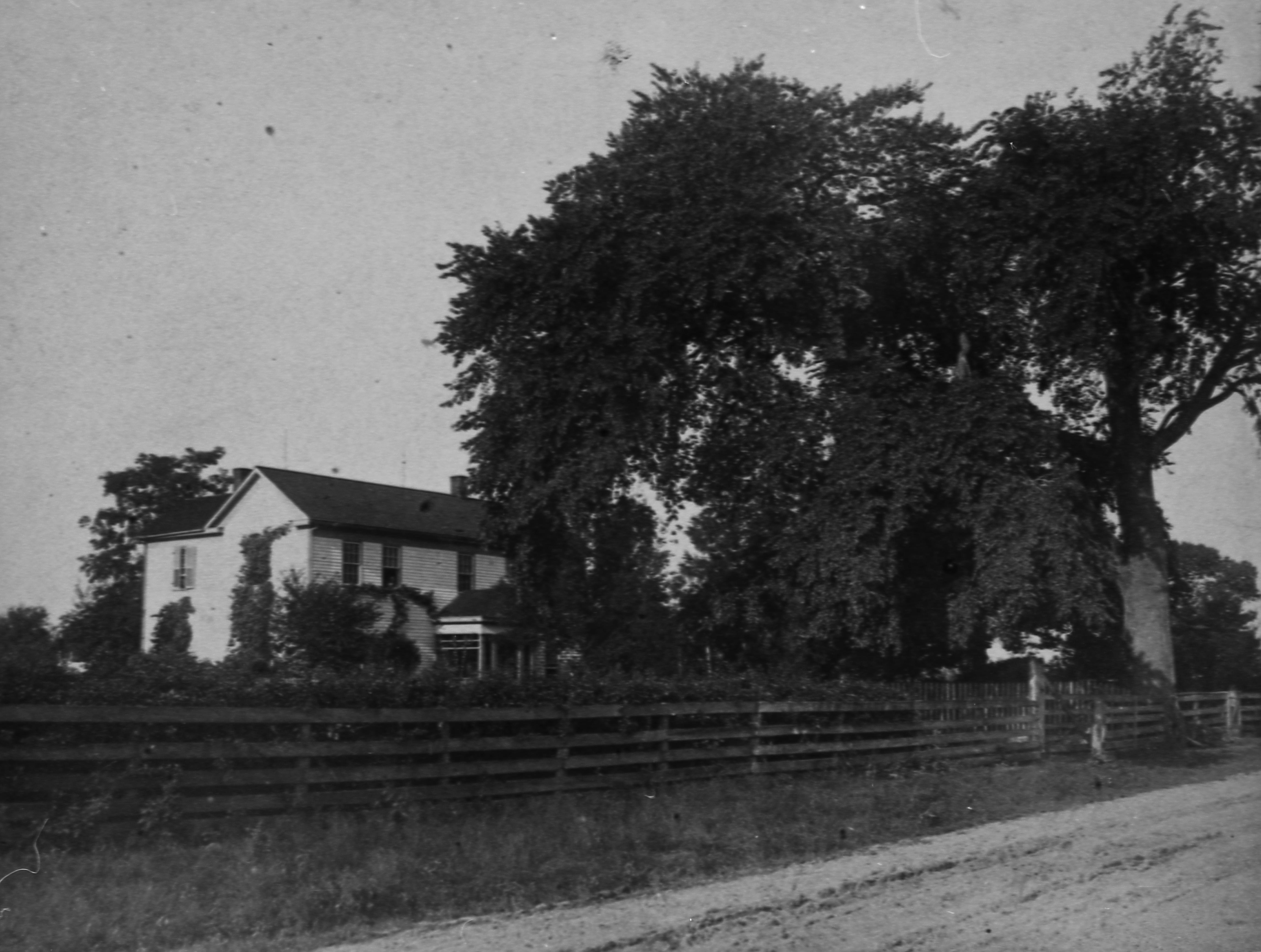 Transparencies and Negatives Collection: Historic photographs. This is a photo of the James Elliott Farm property has a history which pre-dates the Harmonist Settlement era by a few years. James Elliot built the present house in 1826, after immigrating from Britain and joining the Owen Community, he also became the community brewer. His brother John Elliott also had a farm (UA58 � 10350) which was three miles south of New Harmony from Main Street which was demolished in 1959.