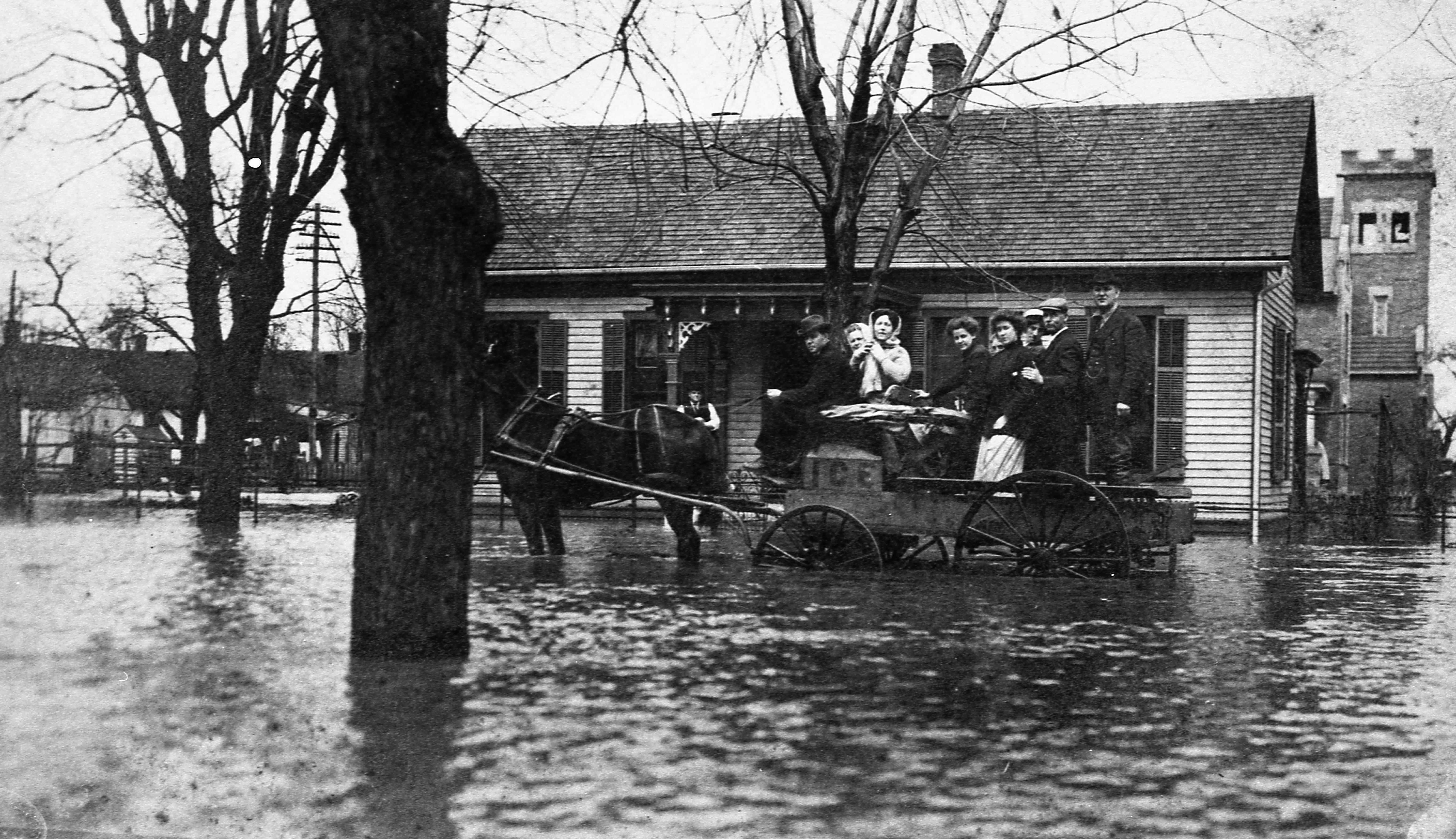 Transparencies and Negatives Collection: Historic photographs. March 1913 Flood. Raintree Street, facing north, from the alley just south of Johnson Methodist Church.