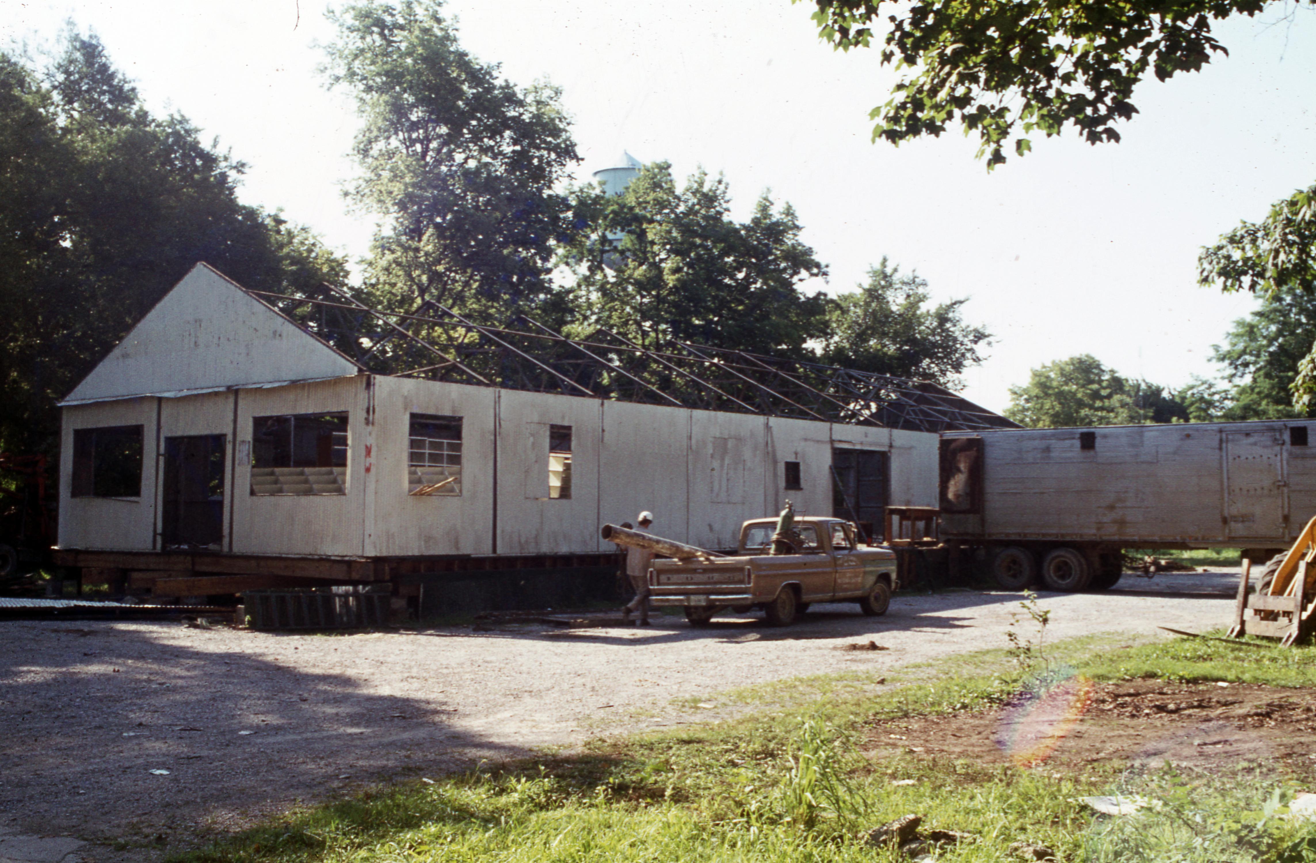 Continental Emsco Company: This building was located on the plat just west of 723 E. Church Street and was dismantled to accommodate the Golden House which was later moved onto this plat. The Continental Emsco Company was incorporated June 4, 1946 in the state of Texas, and dissolution of the company occurred January 31, 1984. The company was in the business of drilling oil wells. The building is being dismantled and loaded into a waiting semi-truck on the right side in this photo.