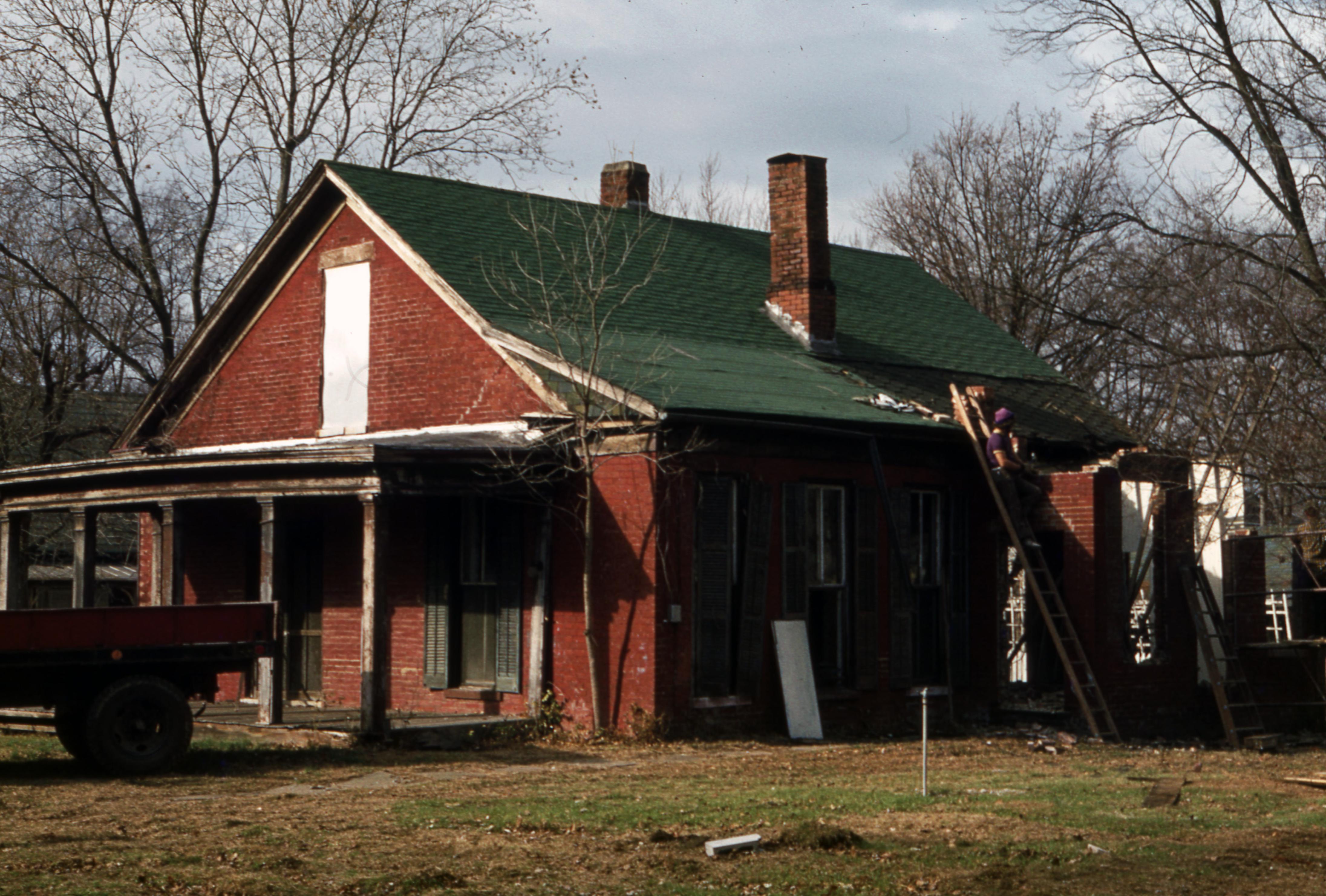 Patterson House: Located at 682 Arthur Street and built in 1850. Workers are in the process of demolishing the east wall addition of the house. This side of the house faces where the old Lewis house was moved to from town block 7 E/SW. The old front porch, which faces Steam Mill Street, has not yet been demolished.