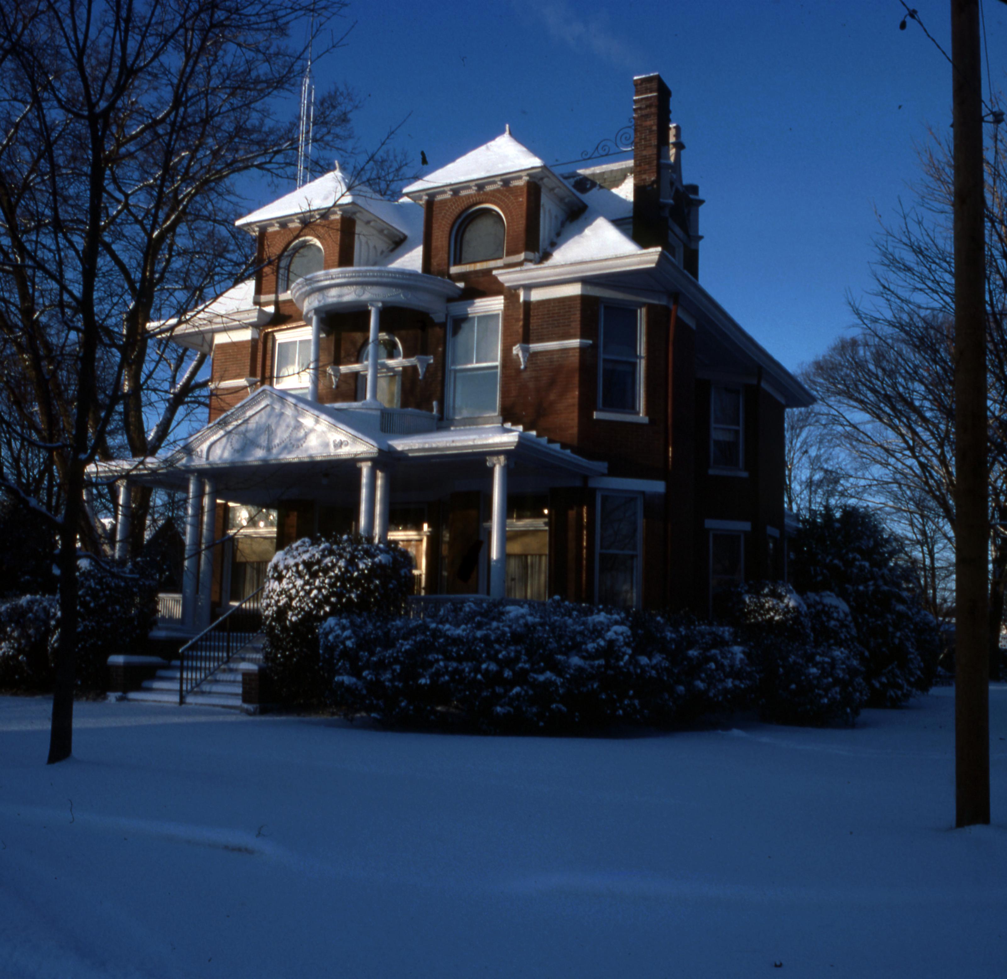 Thomas House: This house is located on the southwest corner of Church and West Streets. The house was built in 1896 and is still standing in 2022. This shows the house under a blanket of snow.
