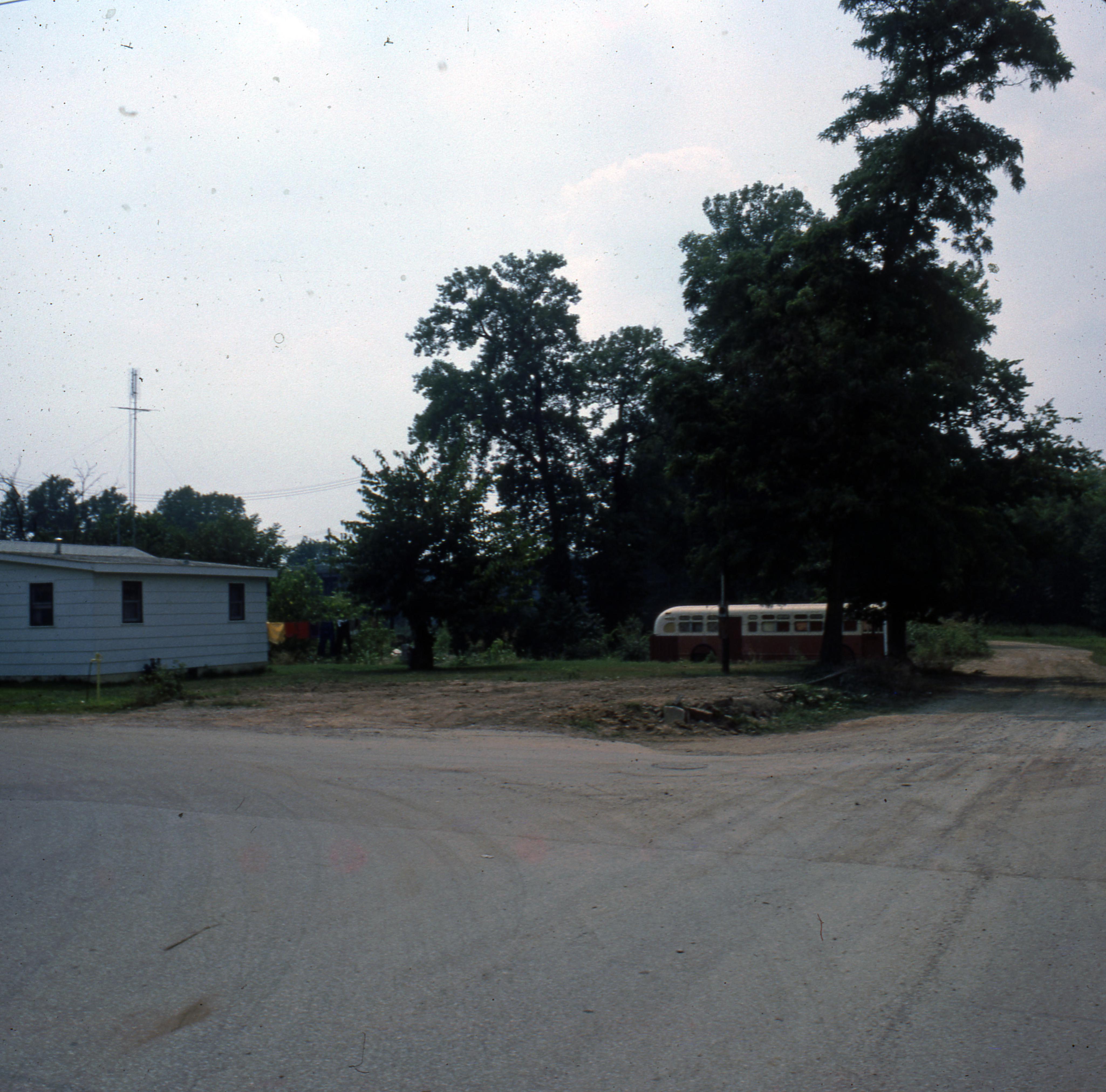 Hungaut House: This family was at the center of town dissention (See UA58 3490, read the posted signs). The small houseboat was burned in May 1975. The small white house was relocated from 3 B/NE, on the north end of Arthur Street, to 906 East Street.