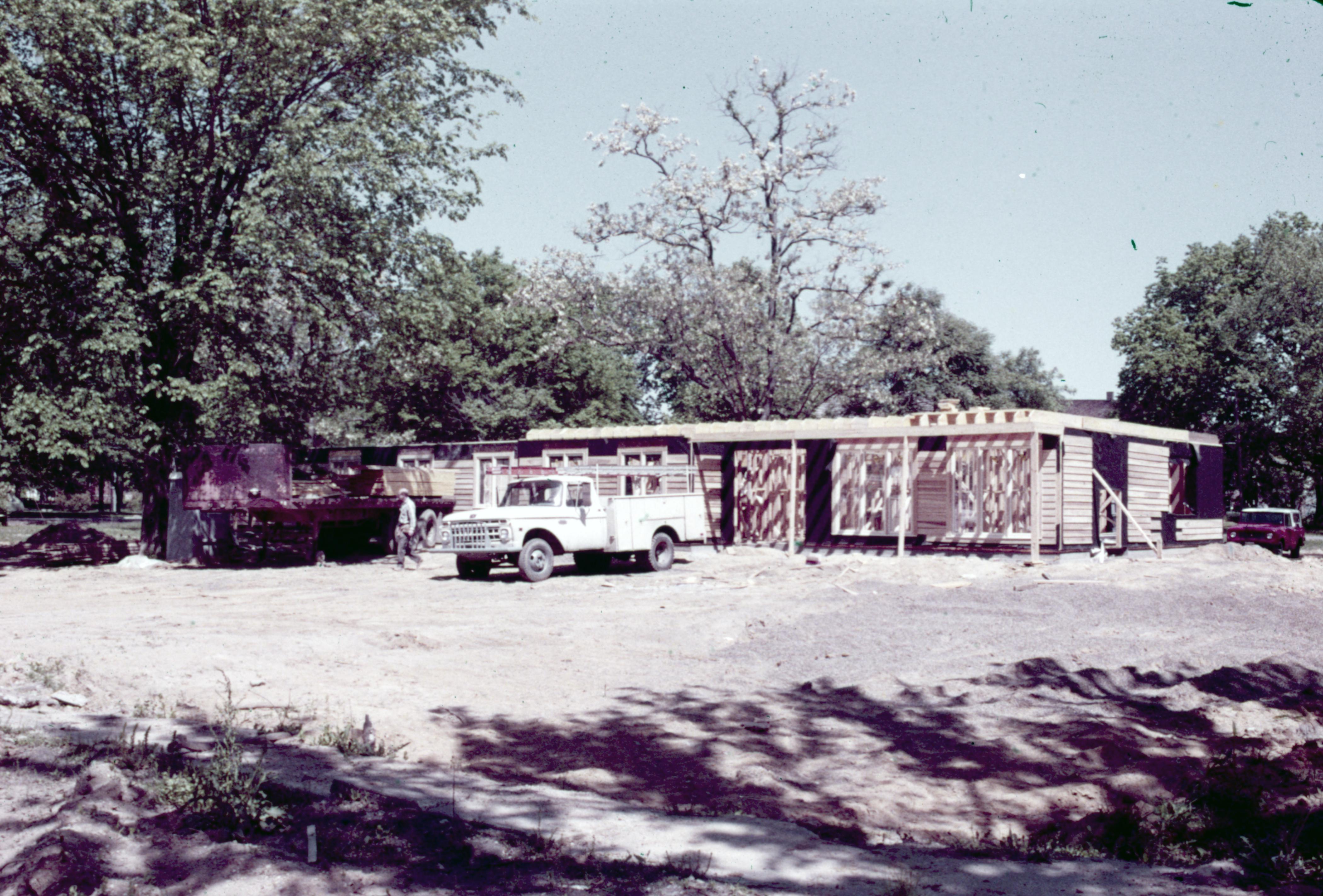 Tree of Life Clinic And Hospital Collection: This building was constructed and located at 510 South Street. This building has been demolished and is no longer present as of 2020. Men working on the outside walls of the building.